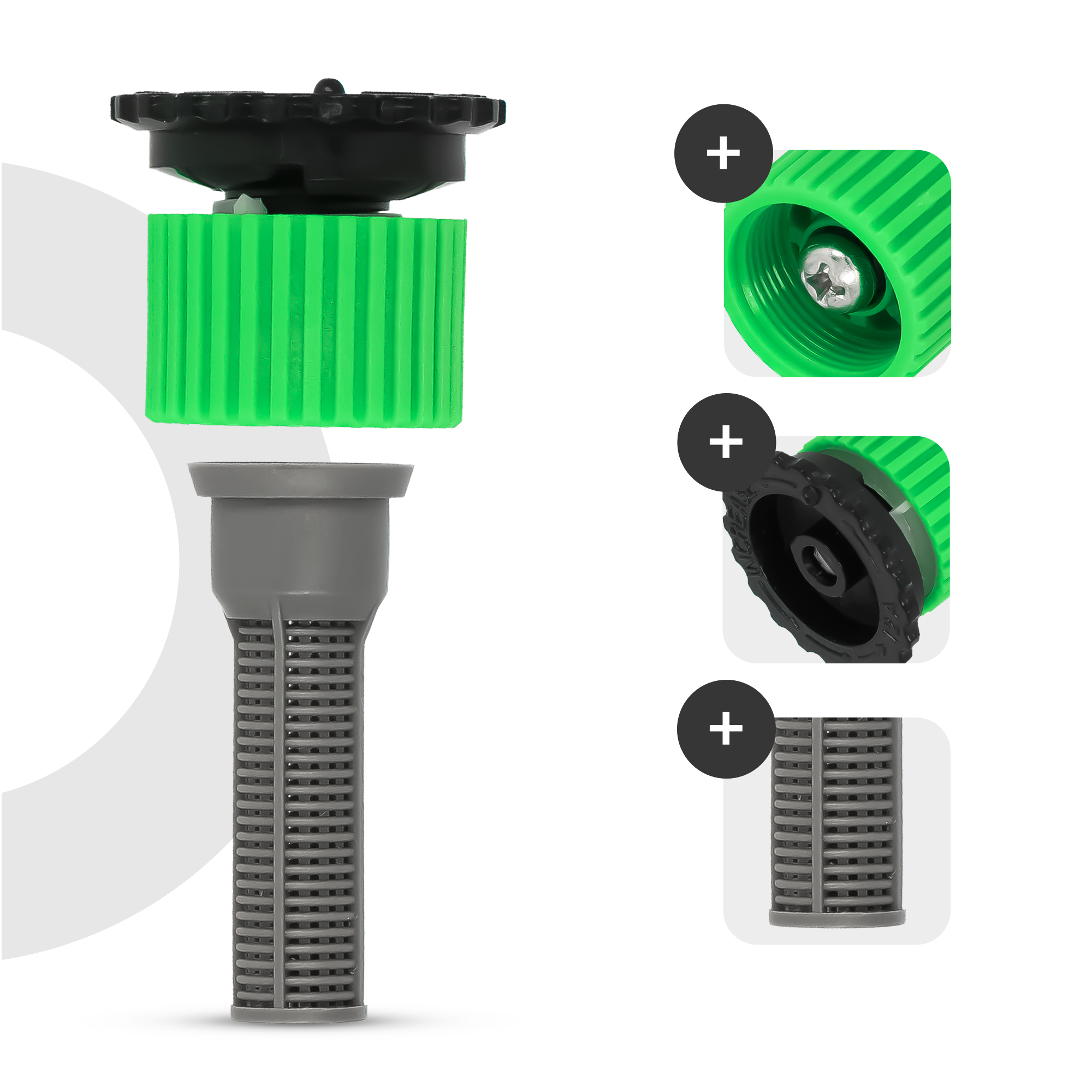 • DOSKONAŁA KOMPATYBILNOŚĆ - element jest uniwersalny i pasuje do większości typowych modeli zraszaczy wynurzalnych na rynku.