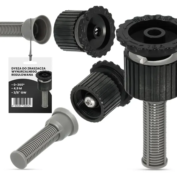 • REGULACJA KĄTA ZRASZANIA - element wyróżnia się regulacją, dzięki której dostosujesz kąt zraszania w zakresie 0-360 stopni.