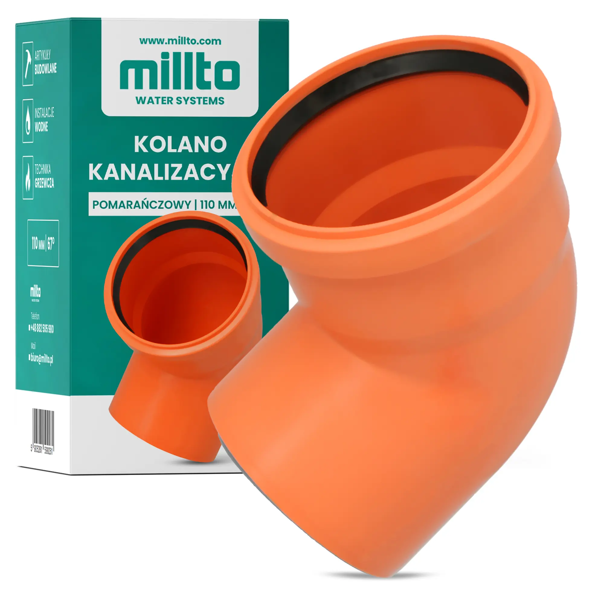 Kolano kanalizacyjne 110 mm x 110 mm 67º pomarańczowe