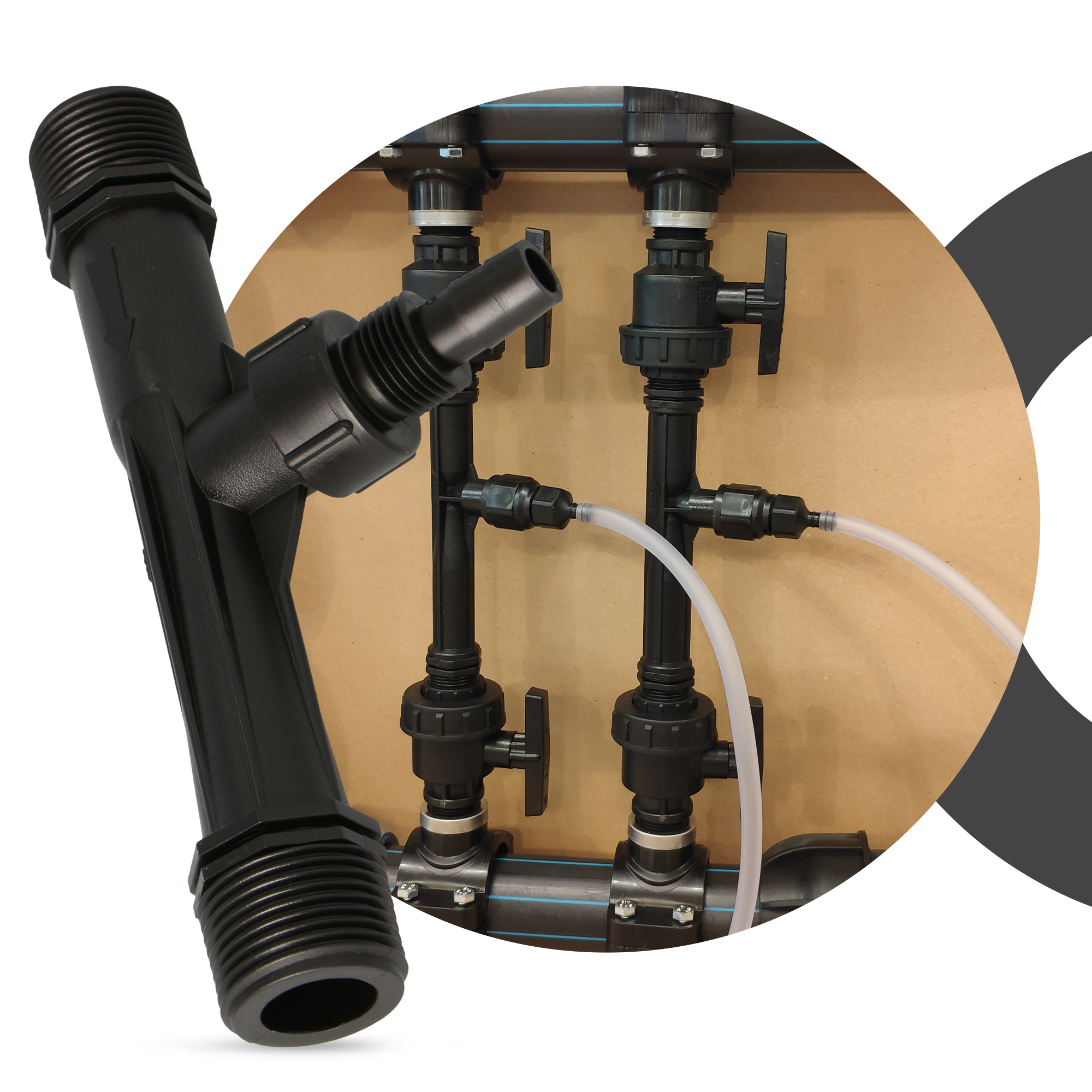 Sam montaż elementu jest równie prosty. Wyposażenie wtryskiwacza w dwa gwinty i przyłącze do węża zasysającego przekłada się na szybkie zamocowanie w systemie nawadniającym.