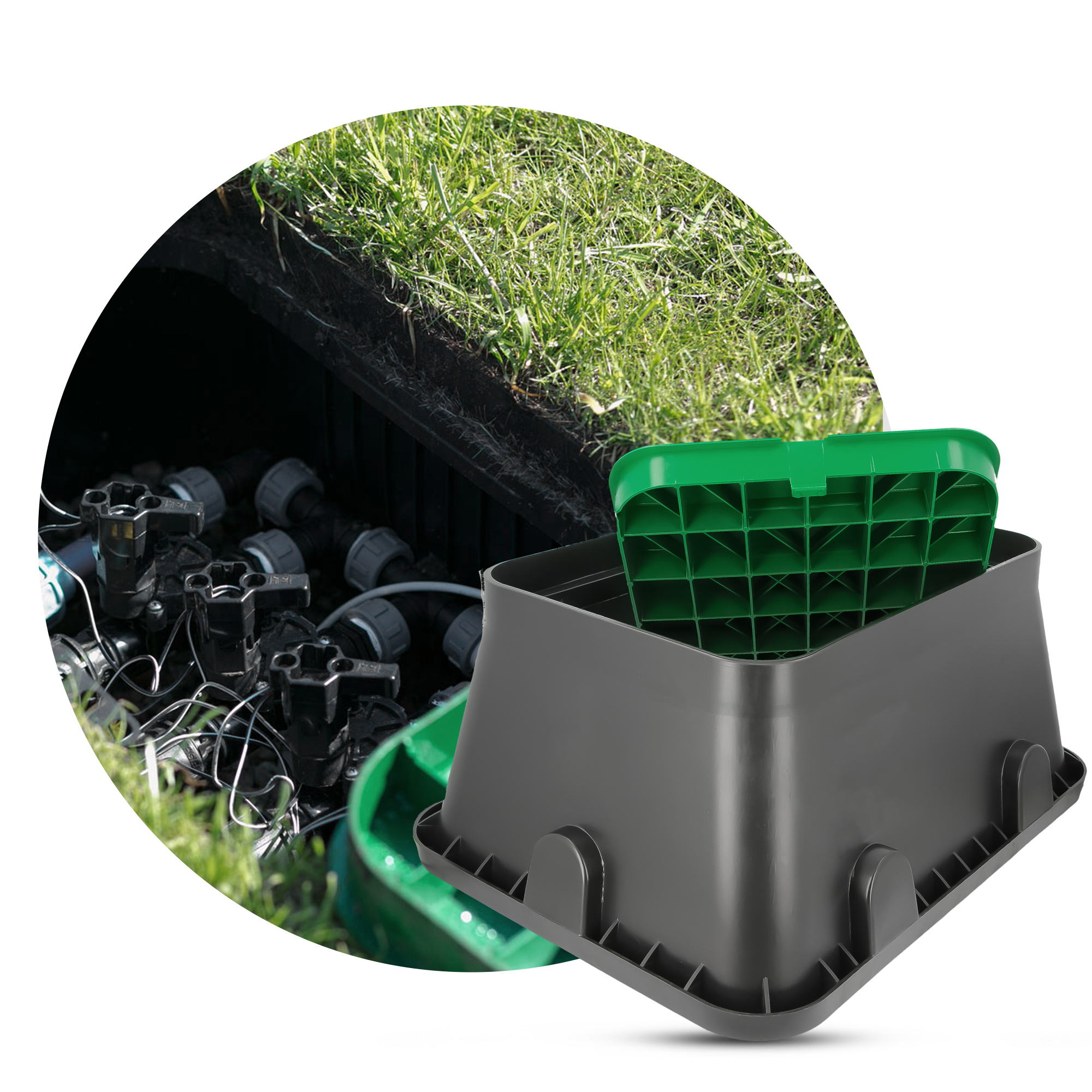 Studnia zaworowa to niezbędny element, który pozwala na bezpieczne schowanie elementów sterowania instalacji nawadniającej pod ziemię. Pojemnik chroni wrażliwe zawory, filtry i regulatory przed zabrudzeniami i warunkami zewnętrznymi.