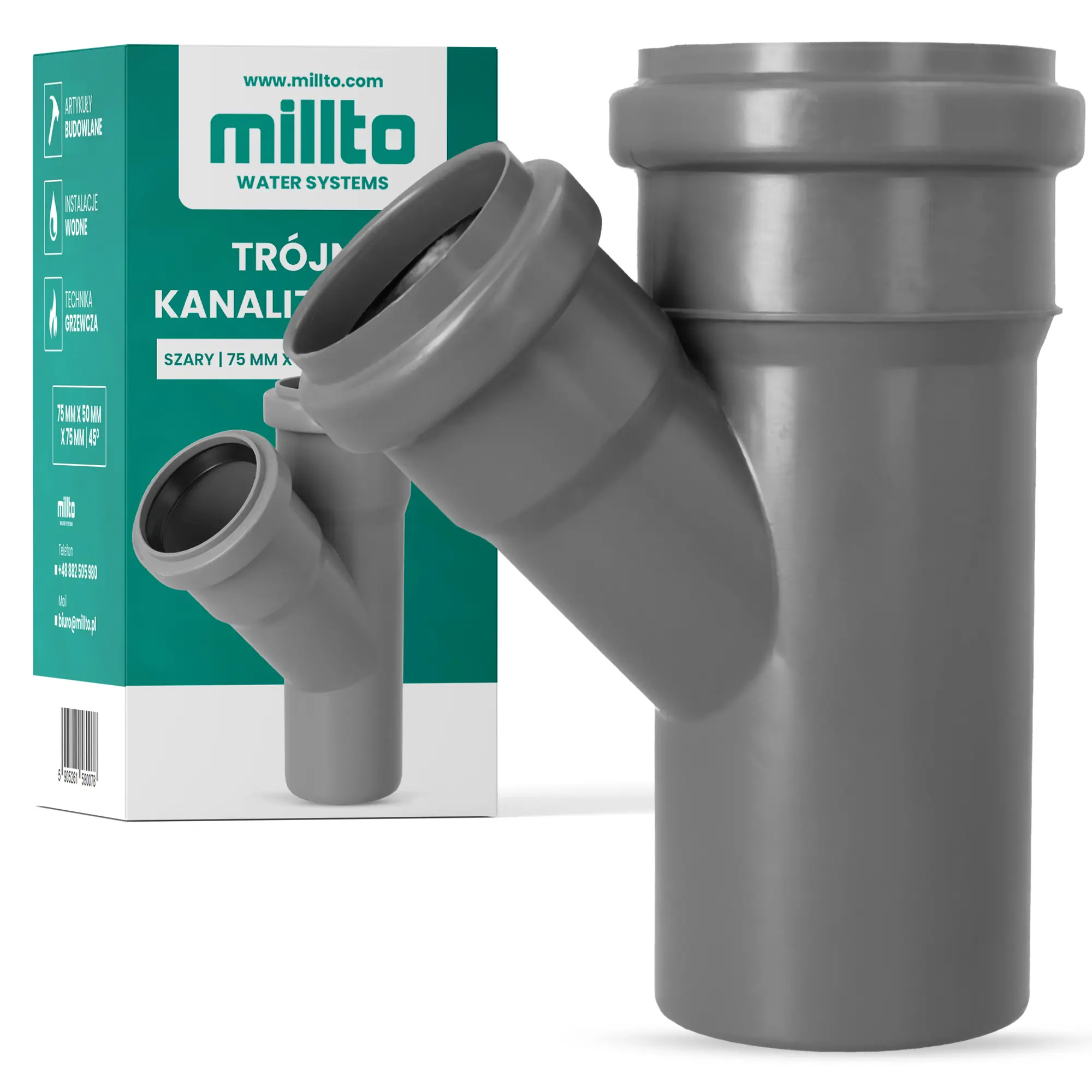 Trójnik kanalizacyjny wykonano z trwałego polipropylenu. Materiał ten zapewnia odporność na uszkodzenia mechaniczne, środki chemiczne, wilgoć, korozję i skrajne temperatury. To element, który posłuży na długie lata.