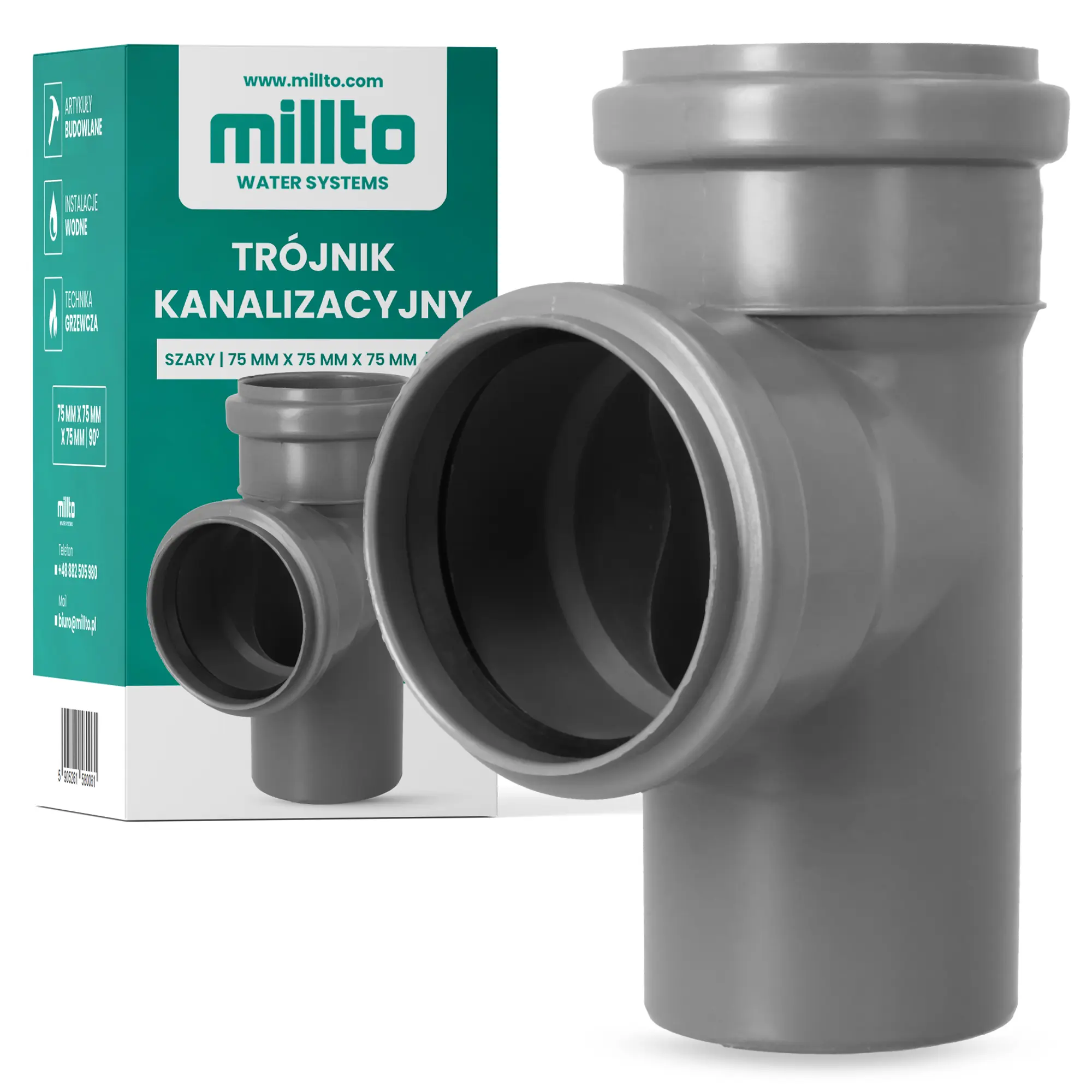 Trójnik kanalizacyjny 75 mm x 75 mm x 75 mm 90º szary