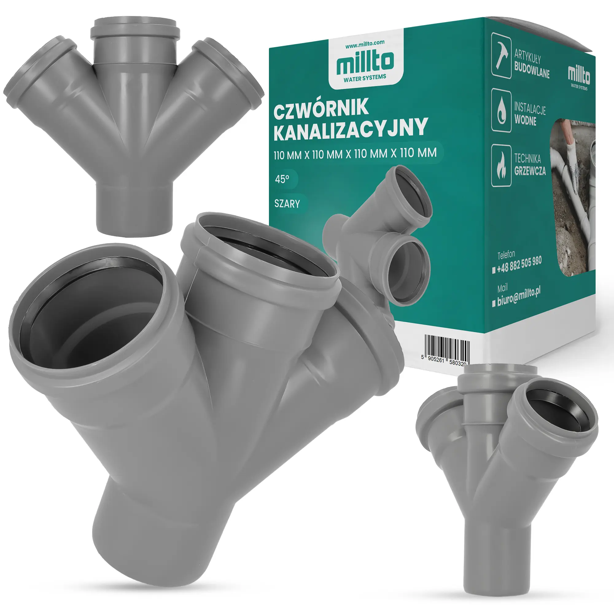 Czwórnik jest wyjątkowo uniwersalny i można stosować w budynkach mieszkalnych, jak i komercyjnych. Element pasuje do różnych rodzajów rur stosowanych w instalacjach kanalizacyjnych, dlatego nie będziesz mieć problemów z dopasowaniem.