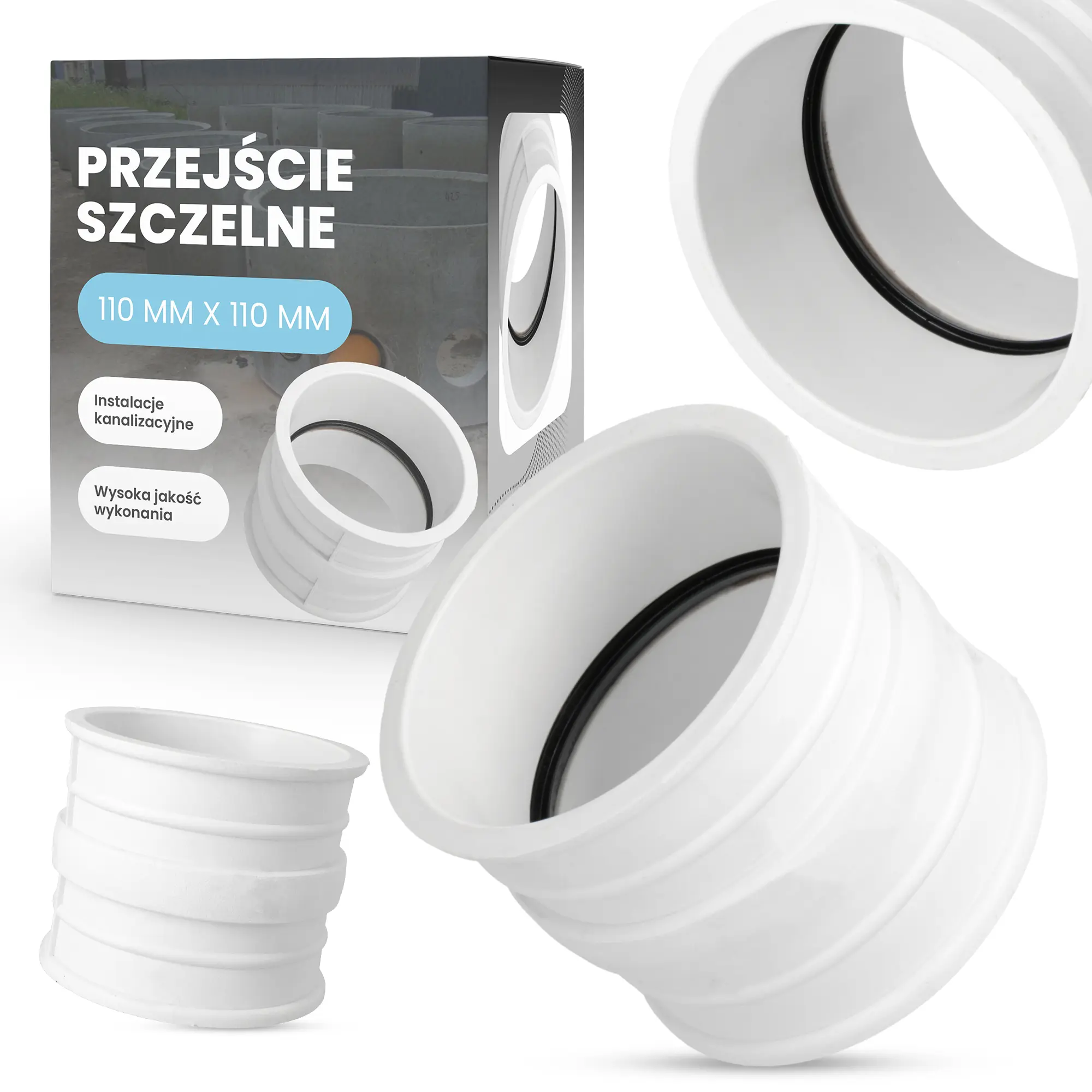 Przejście szczelne - nazywane również stropowym - wykorzystywane jest podczas tworzenia bezciśnieniowych, gazoszczelnych, wodoszczelnych połączeń rur i przewodów ze studzienkami kanalizacyjnymi, kolektorami oraz wszelkiego rodzaju zbiornikami wodnymi. Element doskonale sprawdza się także podczas montażu rur kanalizacyjnych w ścianach i stropach budynku. Umożliwia on precyzyjne osadzenie przewodów wewnątrz przegród budowlanych, zostawiając jednocześnie wolną przestrzeń - konieczną do pracy rury.