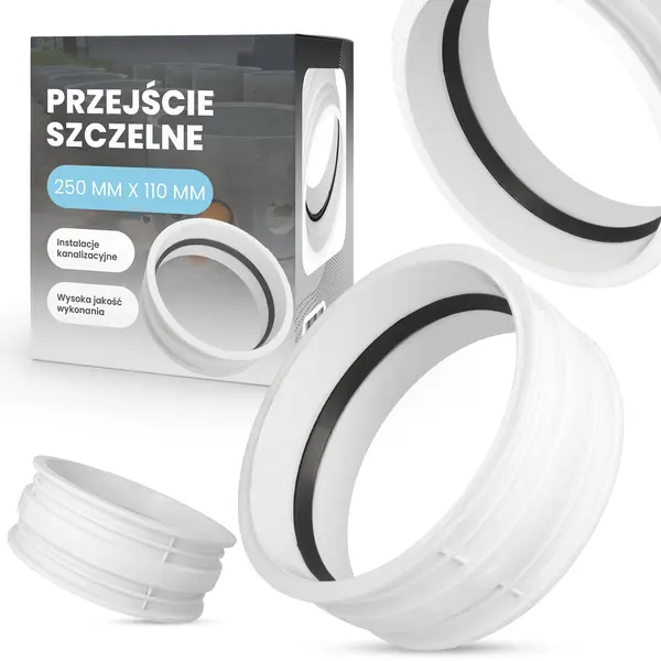 Przejście szczelne - nazywane również stropowym - wykorzystywane jest podczas tworzenia bezciśnieniowych, gazoszczelnych, wodoszczelnych połączeń rur i przewodów ze studzienkami kanalizacyjnymi, kolektorami oraz wszelkiego rodzaju zbiornikami wodnymi. Element doskonale sprawdza się także podczas montażu rur kanalizacyjnych w ścianach i stropach budynku. Umożliwia on precyzyjne osadzenie przewodów wewnątrz przegród budowlanych, zostawiając jednocześnie wolną przestrzeń - konieczną do pracy rury.