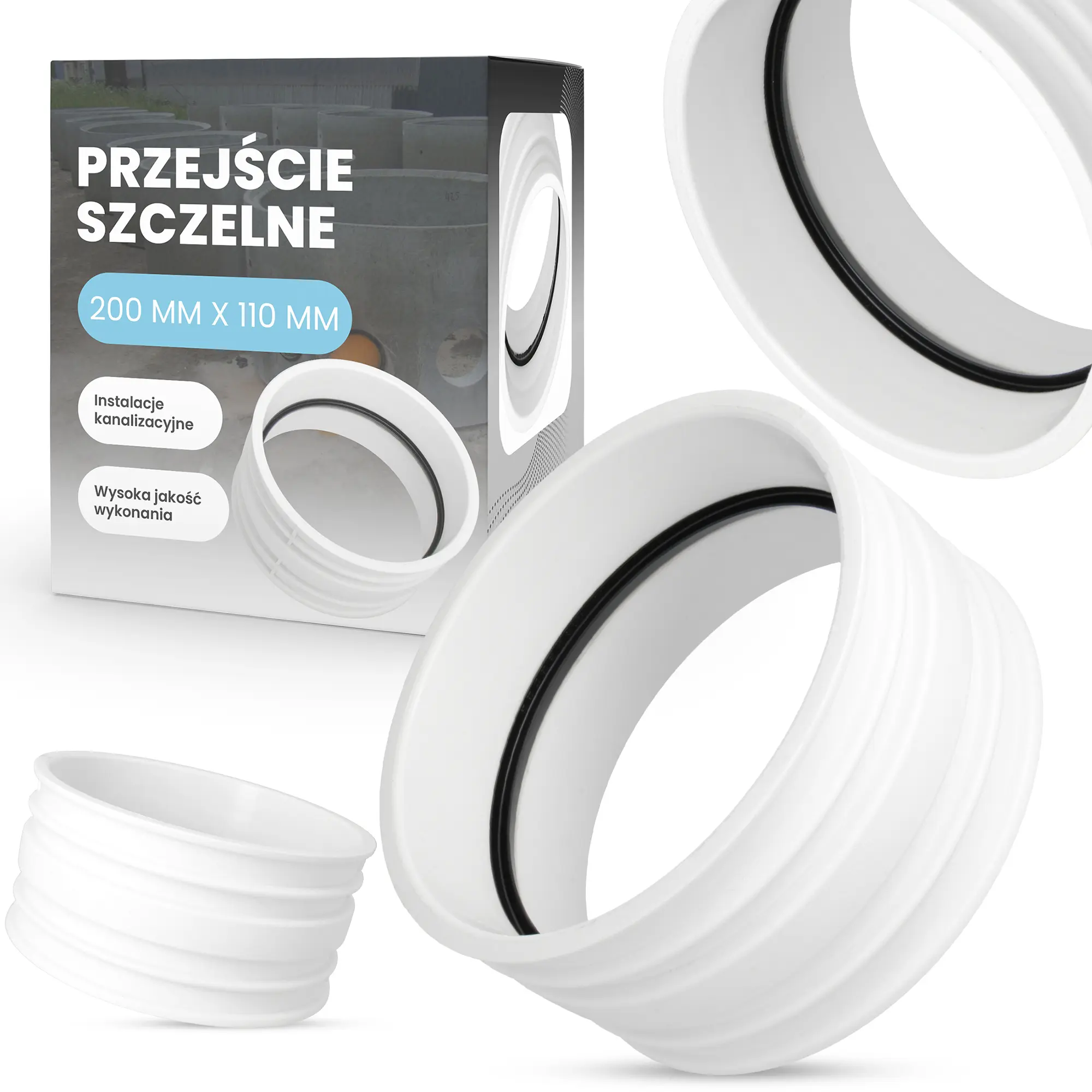 Przejście szczelne - nazywane również stropowym - wykorzystywane jest podczas tworzenia bezciśnieniowych, gazoszczelnych, wodoszczelnych połączeń rur i przewodów ze studzienkami kanalizacyjnymi, kolektorami oraz wszelkiego rodzaju zbiornikami wodnymi. Element doskonale sprawdza się także podczas montażu rur kanalizacyjnych w ścianach i stropach budynku. Umożliwia on precyzyjne osadzenie przewodów wewnątrz przegród budowlanych, zostawiając jednocześnie wolną przestrzeń - konieczną do pracy rury.