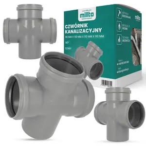 Czwórnik to wygodna złączka, dzięki której połączysz cztery rury instalacji kanalizacyjnej. Dzięki niemu dostosujesz kształt rurociągu, łącząc odpływy z różnych urządzeń w jeden. To pozwala na łatwą organizację i dostosowanie systemu do potrzeb budynku.