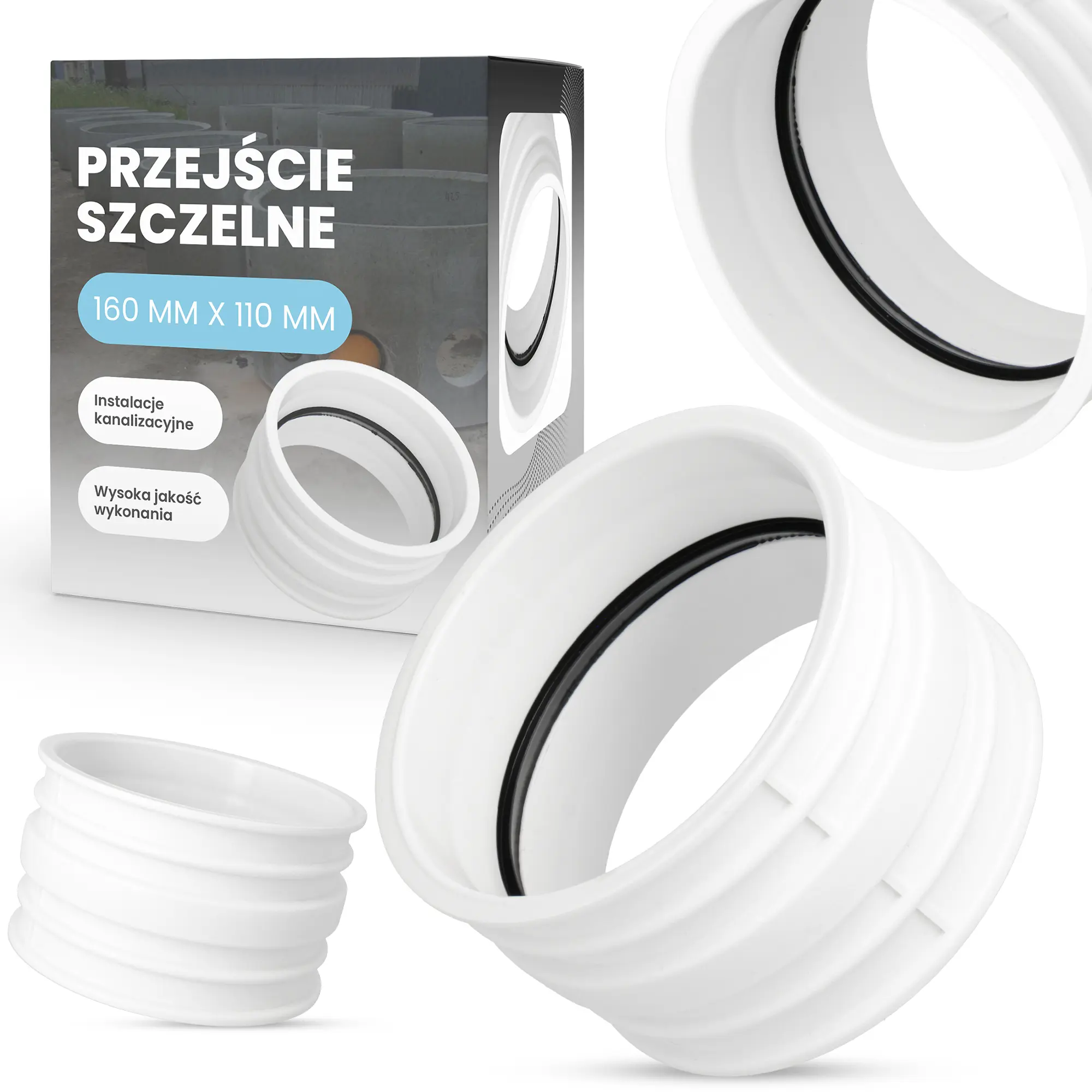 Przejście szczelne - nazywane również stropowym - wykorzystywane jest podczas tworzenia bezciśnieniowych, gazoszczelnych, wodoszczelnych połączeń rur i przewodów ze studzienkami kanalizacyjnymi, kolektorami oraz wszelkiego rodzaju zbiornikami wodnymi. Element doskonale sprawdza się także podczas montażu rur kanalizacyjnych w ścianach i stropach budynku. Umożliwia on precyzyjne osadzenie przewodów wewnątrz przegród budowlanych, zostawiając jednocześnie wolną przestrzeń - konieczną do pracy rury.
