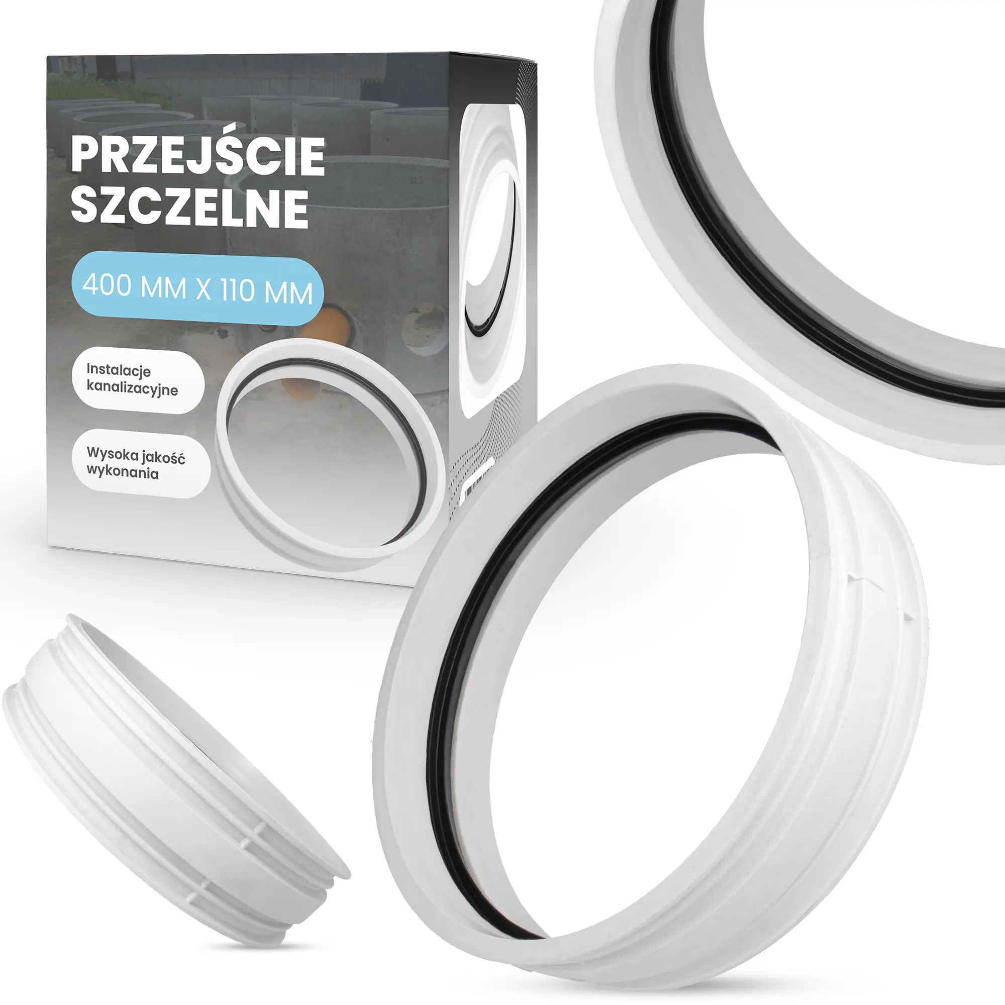 Przejście szczelne - nazywane również stropowym - wykorzystywane jest podczas tworzenia bezciśnieniowych, gazoszczelnych, wodoszczelnych połączeń rur i przewodów ze studzienkami kanalizacyjnymi, kolektorami oraz wszelkiego rodzaju zbiornikami wodnymi. Element doskonale sprawdza się także podczas montażu rur kanalizacyjnych w ścianach i stropach budynku. Umożliwia on precyzyjne osadzenie przewodów wewnątrz przegród budowlanych, zostawiając jednocześnie wolną przestrzeń - konieczną do pracy rury.