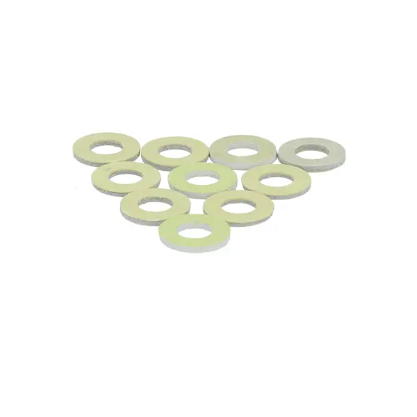 W zestawie znajduje się po 10 uszczelek w kolorze żółtym. Grubość każdej uszczelki to 2 mm, średnicę produktu można dopasować do własnych wymagań spośród dostępnych rozwiązań.