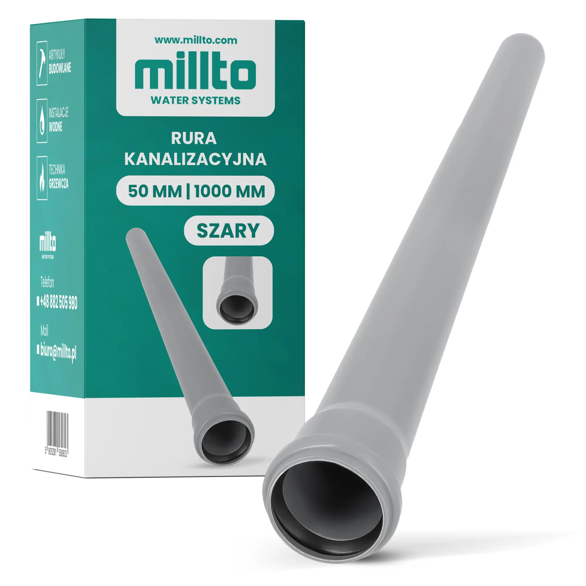 Rura kanalizacyjna 50 mm 1000 mm szary