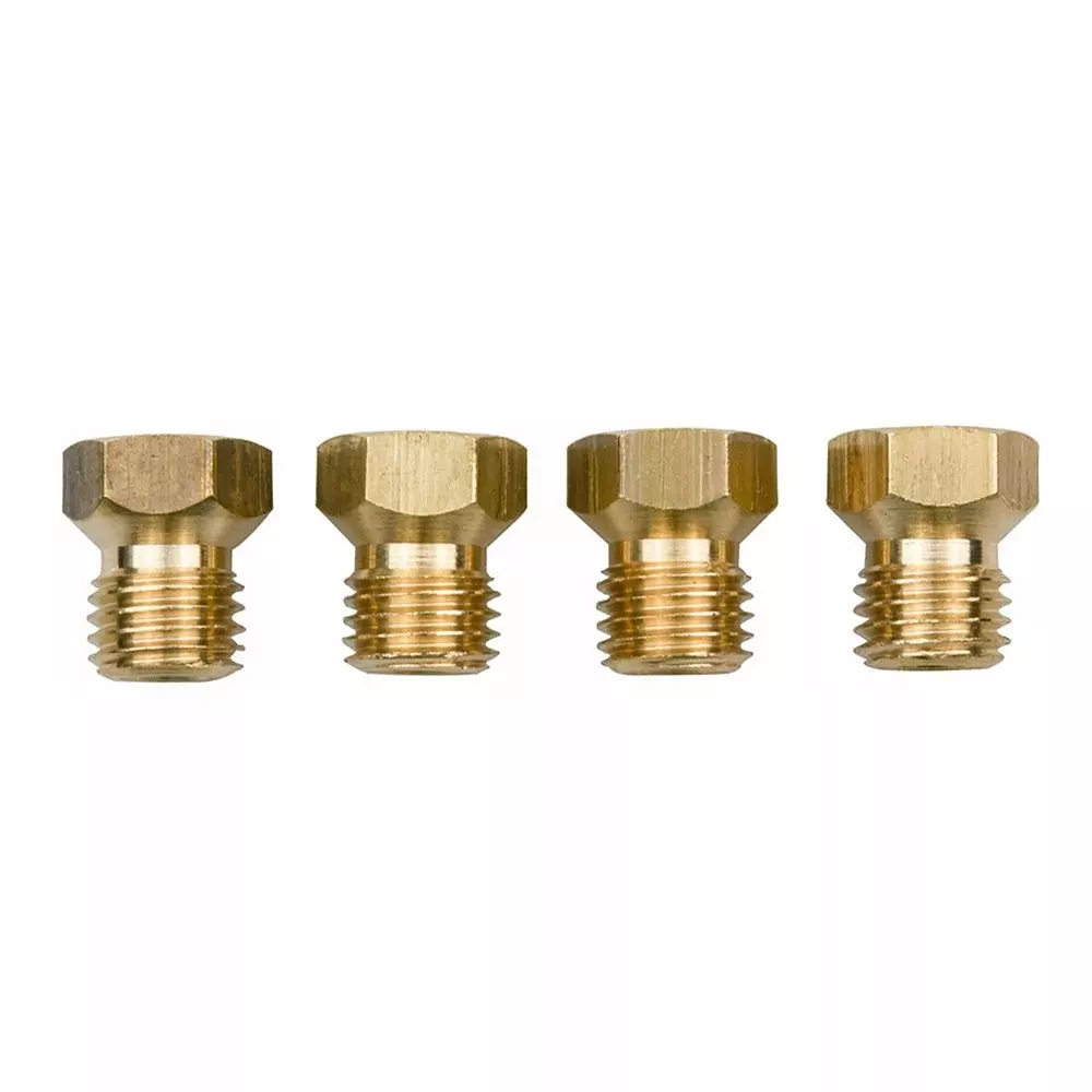 Komplet dysz do kuchenki gazowej składa się z 4 elementów, po jednym do każdego z palników. Dysze wykonano z mosiądzu. Metal ten jest odporny na zarysowania, korozję, uszkodzenia mechaniczne oraz działanie wysokich temperatur. Dzięki wymienionym właściwościom dysze działają bezawaryjnie przez długi czas.