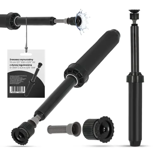 Zraszacz wynurzalny 15 cm 1/2'' GW x 3/8'' GZ z dyszą regulowaną 0-360° / 4,9 m 3/8'' GW