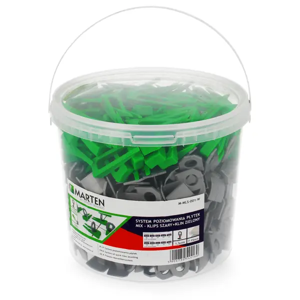System eliminuje potrzebę stosowania standardowych elementów takich jak krzyżyki dystansowe. Zestaw składa się z 300 klipsów oraz 100 klinów. Kliny można wykorzystywać wielokrotnie.