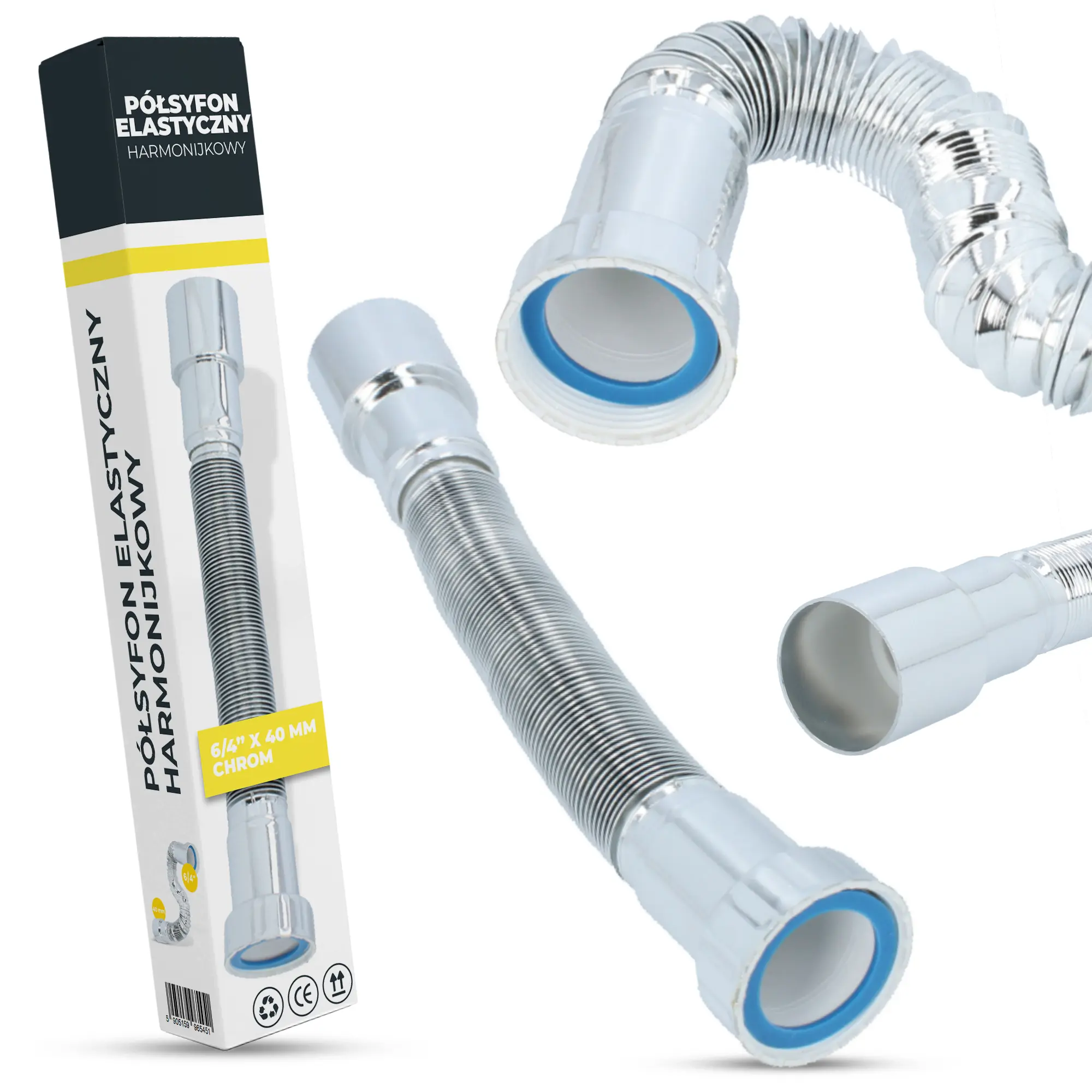 Półsyfon elastyczny harmonijkowy 6/4'' x 40 mm chrom
