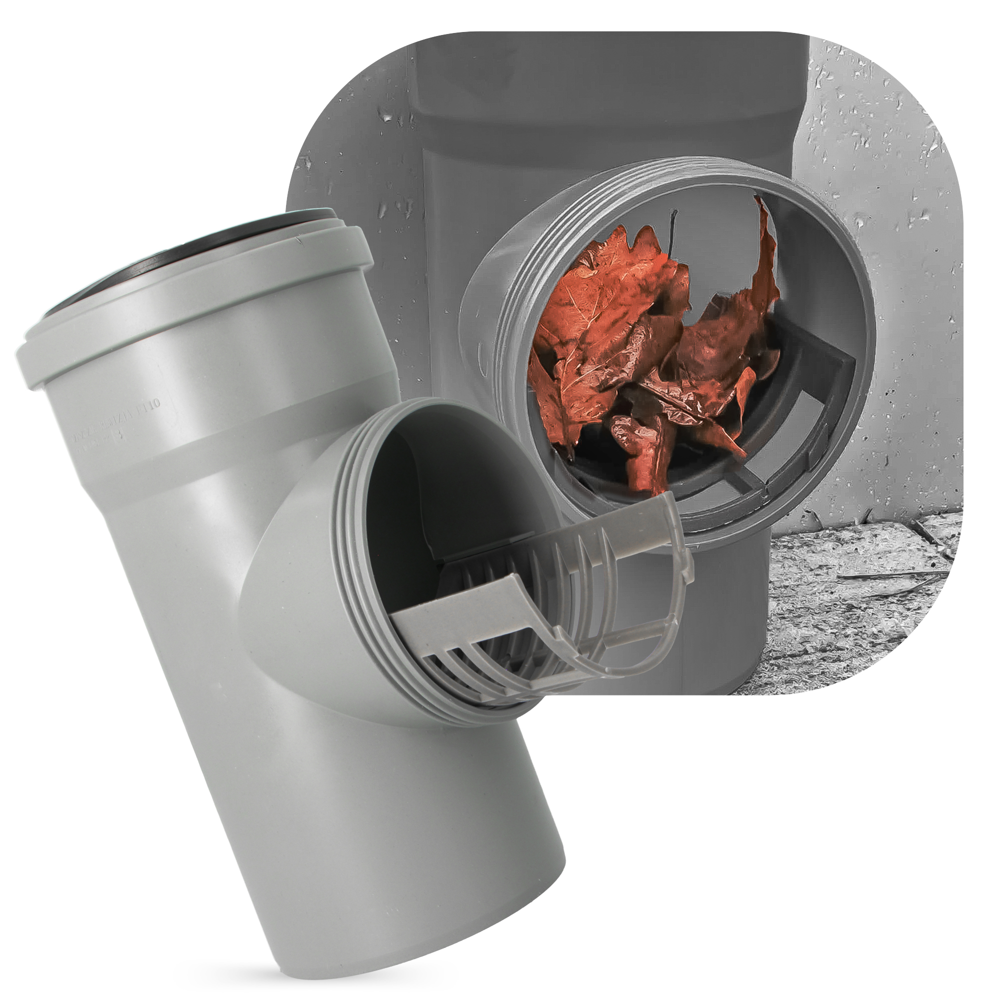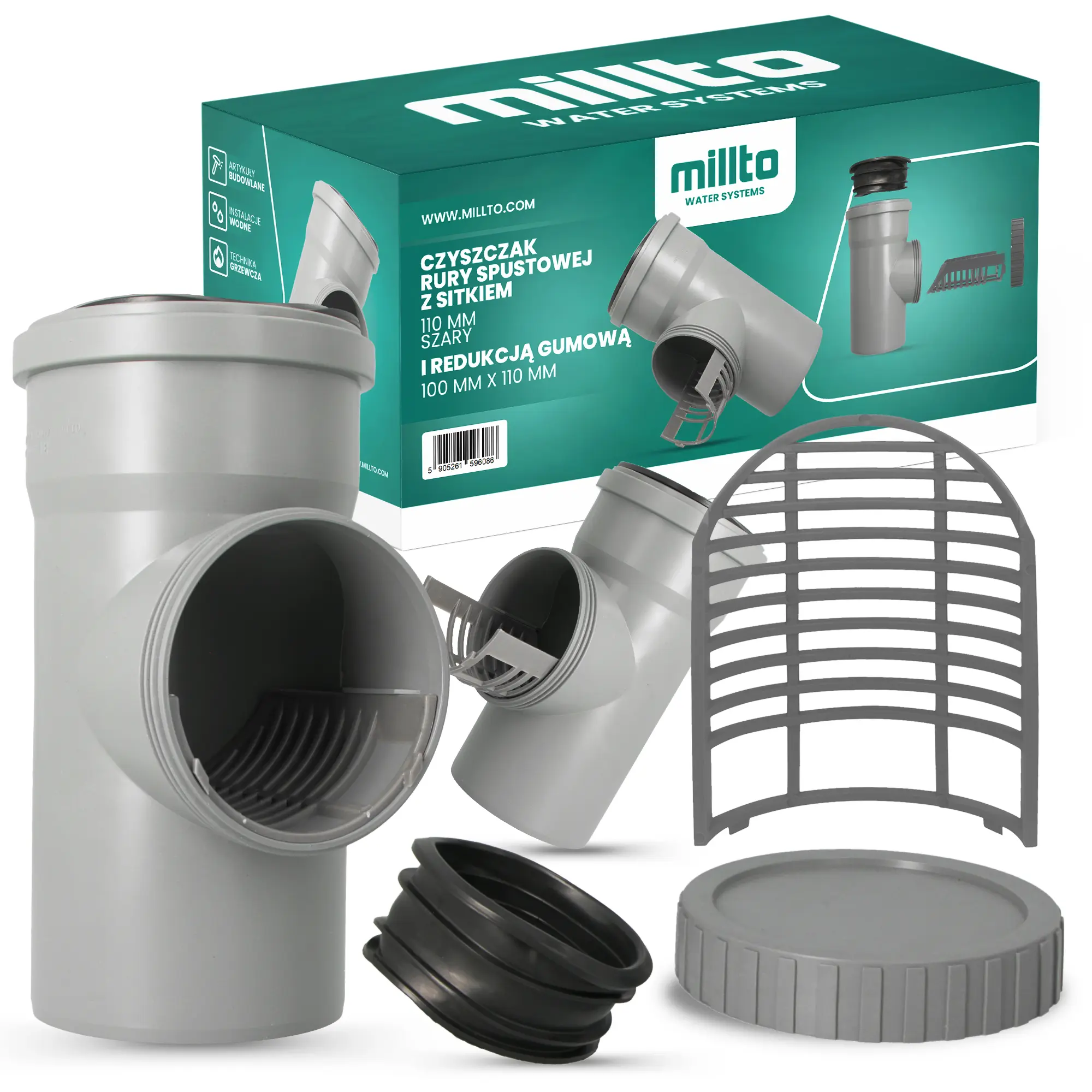 Czyszczak wyposażono w skuteczne sitko, które dokładnie wyłapuje wszelkie elementy płynące wraz z wodą z dachu. Element zapewnia łatwy dostęp do środka, dzięki czemu czyszczenie i konserwacja jest wyjątkowo proste.