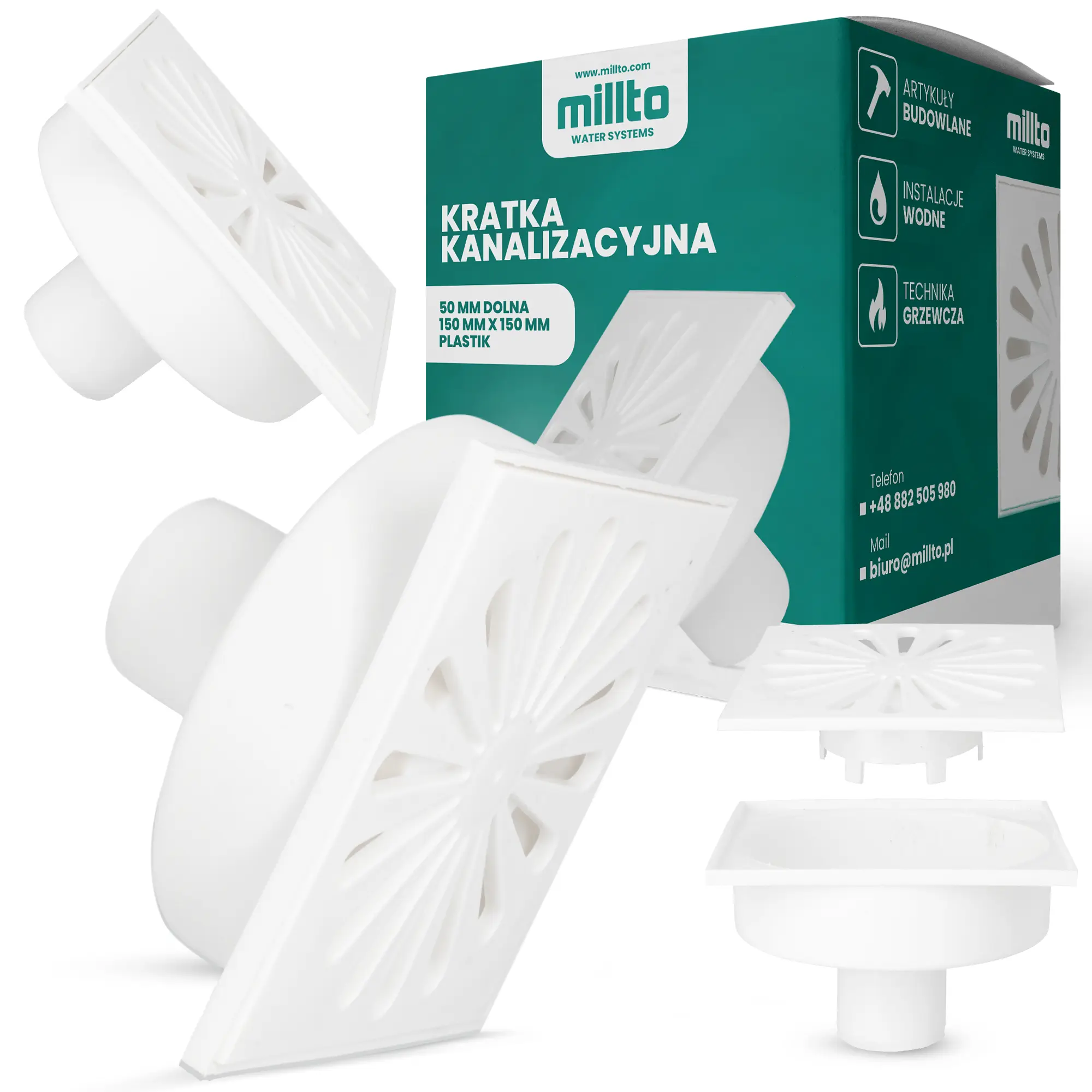 Kratka kanalizacyjna 50 mm dolna 150 mm x 150 mm plastik