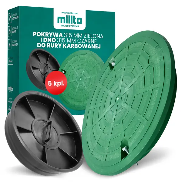 Pokrywa 315 mm zielona i dno 315 mm czarne do rury karbowanej 5 kpl.
