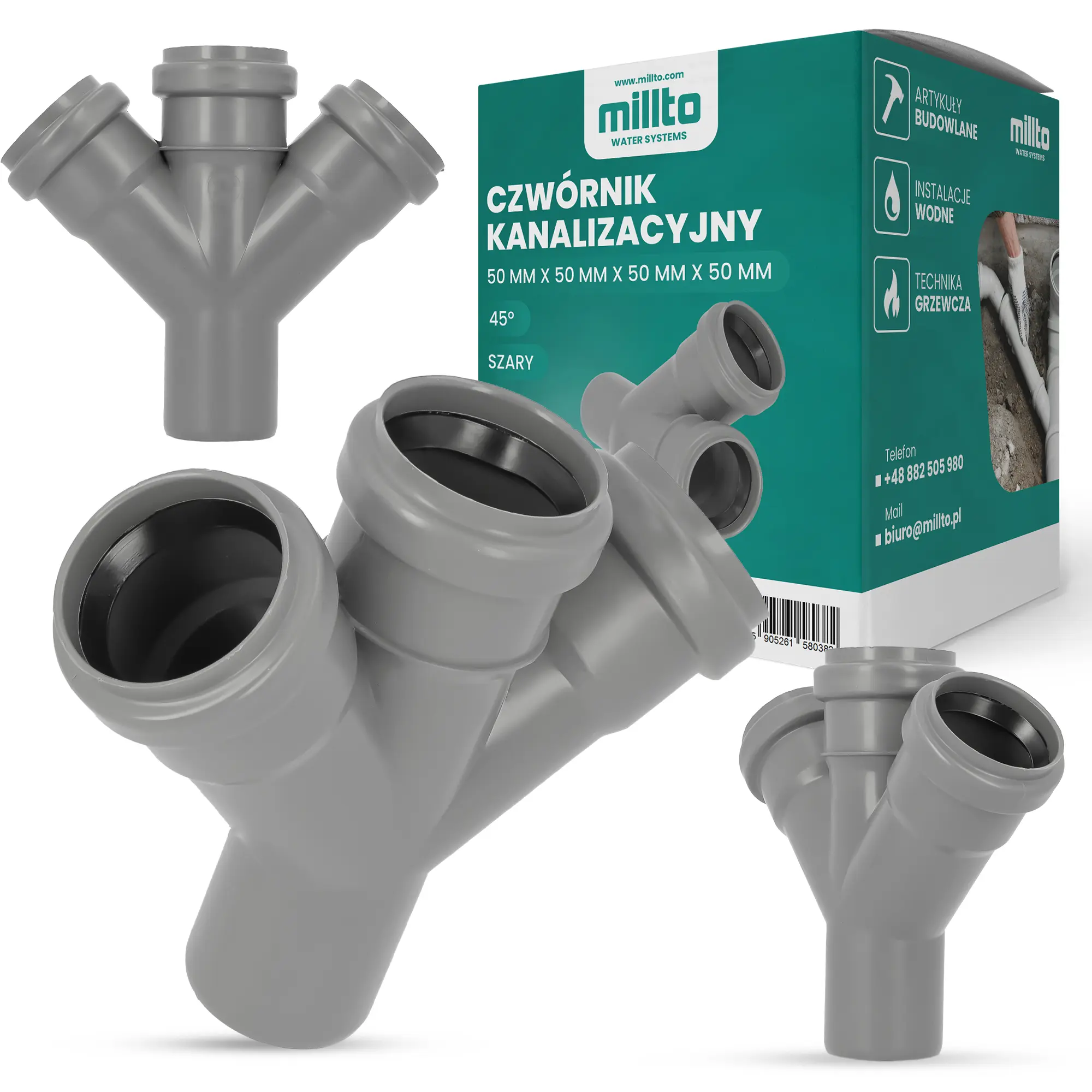 • UNIWERSALNY ELEMENT - czwórnik sprawdza się w instalacjach kanalizacyjnych w budynkach prywatnych i komercyjnych.