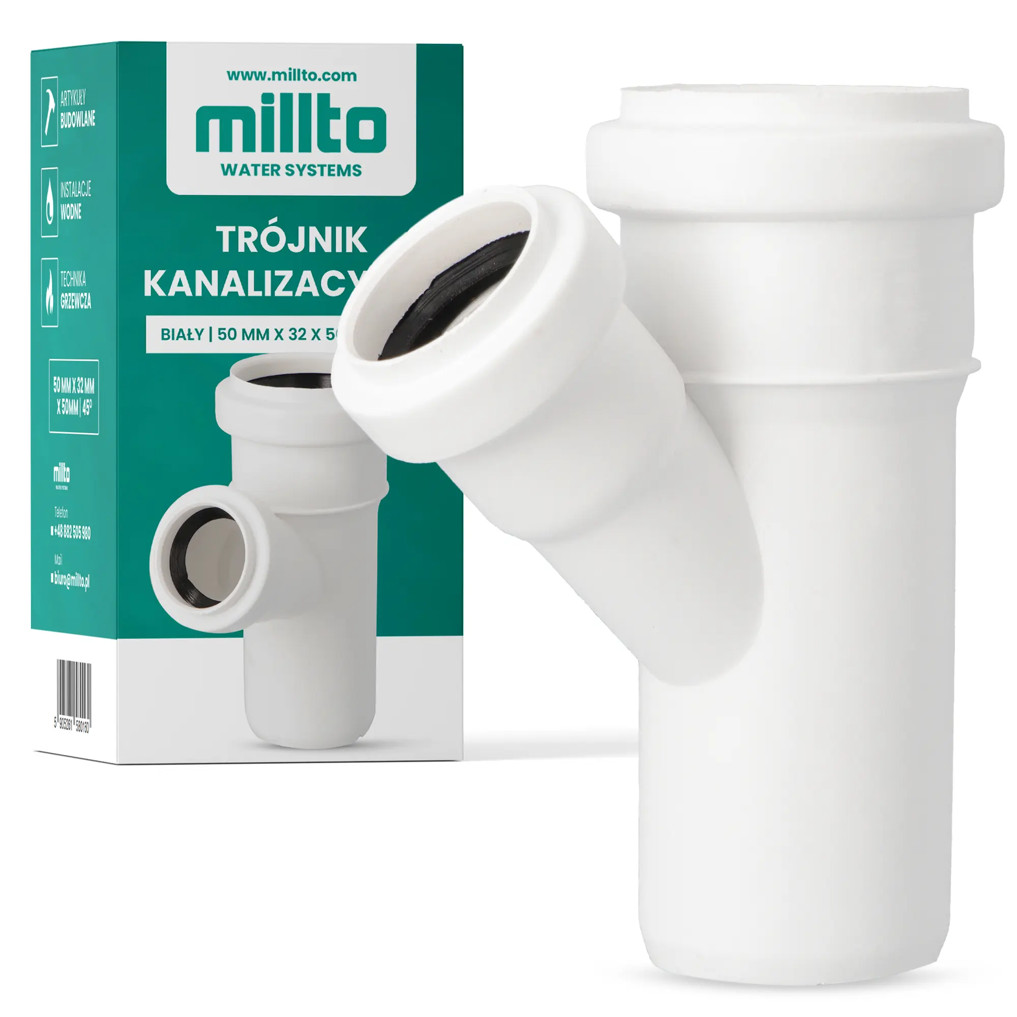 Trójnik kanalizacyjny 50 mm x 32 mm x 50 mm 45º biały