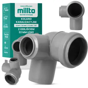 Kolano kanalizacyjne 50 mm x 32 mm 90º z odejściem 32 mm lewe szary