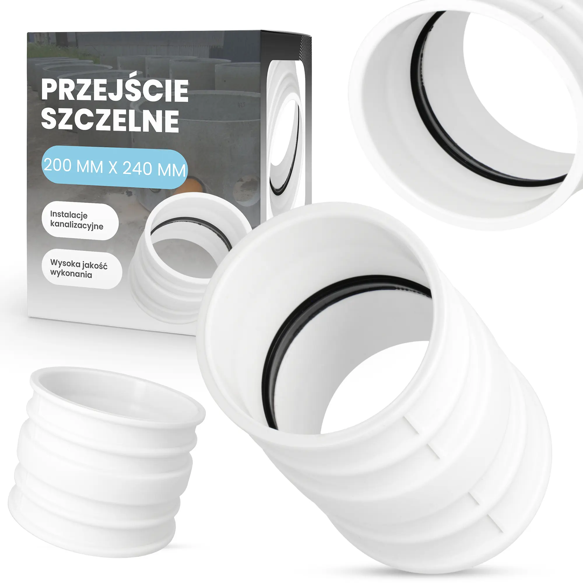 Przejście szczelne - nazywane również stropowym - wykorzystywane jest podczas tworzenia bezciśnieniowych, gazoszczelnych, wodoszczelnych połączeń rur i przewodów ze studzienkami kanalizacyjnymi, kolektorami oraz wszelkiego rodzaju zbiornikami wodnymi. Element doskonale sprawdza się także podczas montażu rur kanalizacyjnych w ścianach i stropach budynku. Umożliwia on precyzyjne osadzenie przewodów wewnątrz przegród budowlanych, zostawiając jednocześnie wolną przestrzeń - konieczną do pracy rury.