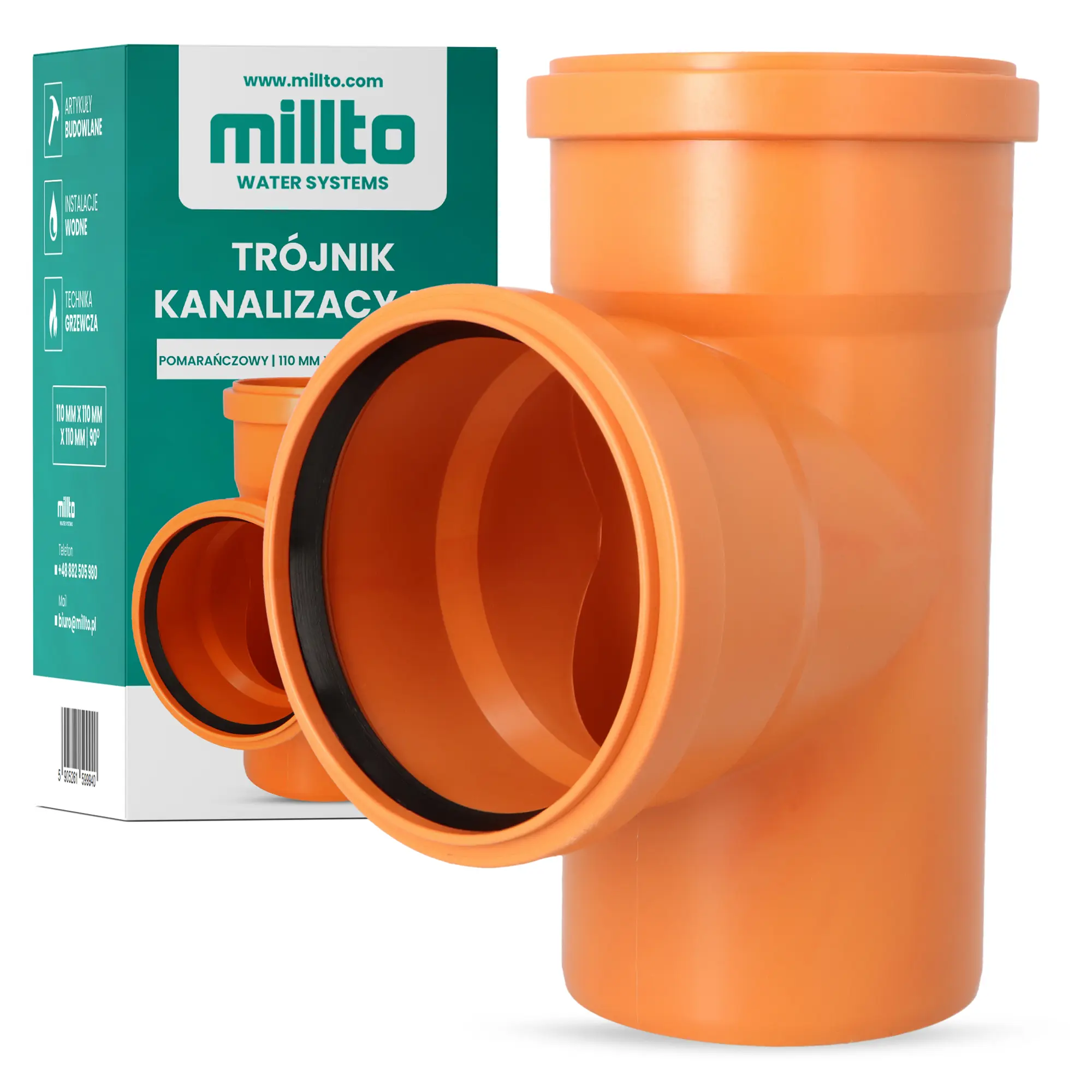 Trójnik kanalizacyjny 110 mm x 110 mm x 110 mm 90º pomarańczowy
