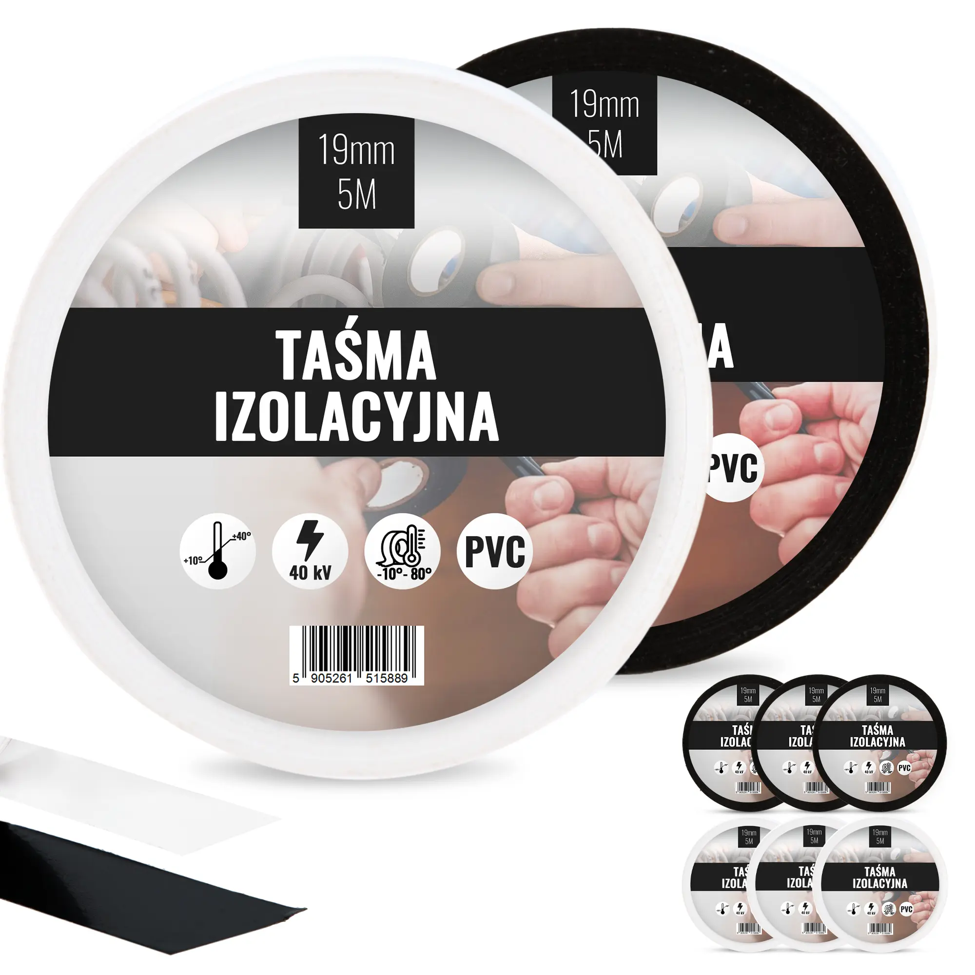 Taśma izolacyjna 19 mm x 5 m biały 3 szt., czarny 3 szt.