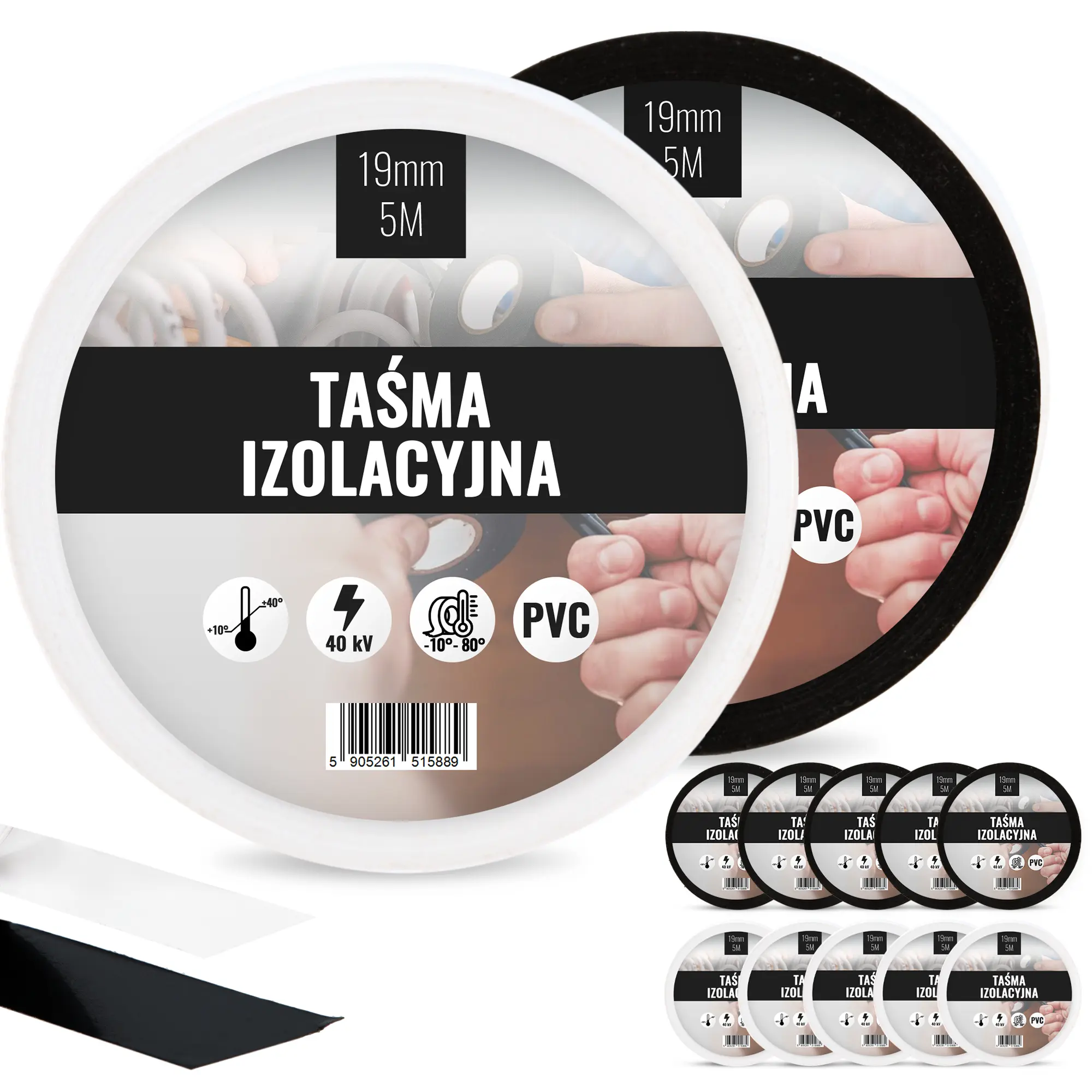 Taśma izolacyjna 19 mm x 5 m biały 5 szt., czarny 5 szt.