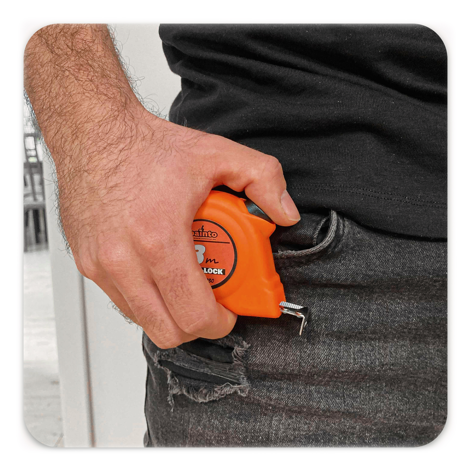 Miara Auto Lock to kompaktowe akcesorium z automatycznie zwijaną taśmą. Dzięki niej wykonywanie pomiarów to żaden problem.