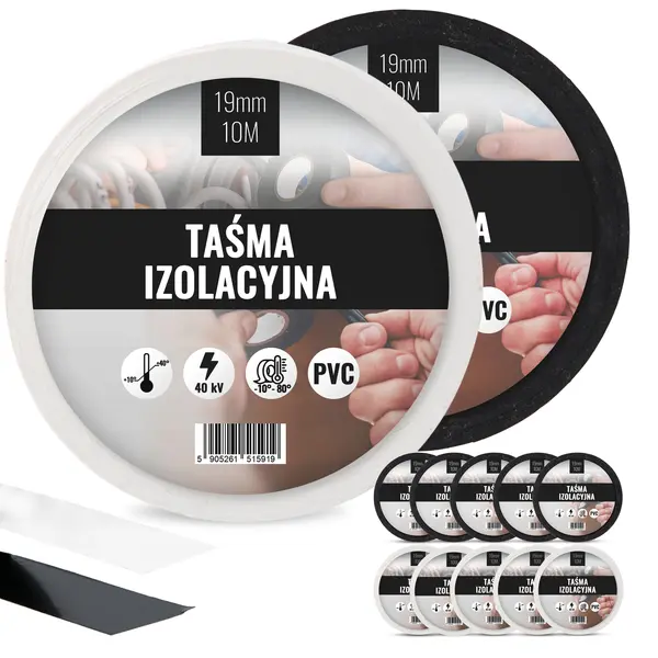 Taśma izolacyjna 19 mm x 10 m biały 5 szt., czarny 5 szt.