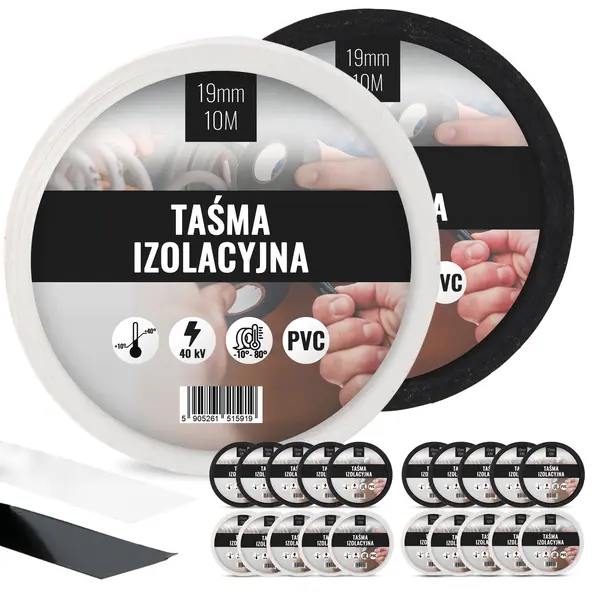 Taśma izolacyjna 19 mm x 10 m biały 10 szt., czarny 10 szt.