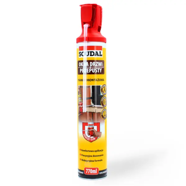 Pianka montażowa Soudal pozwala na szybkie wykonanie izolacji akustycznej i termicznej. Dzięki niej bez problemu zamontujesz okna, drzwi czy schody.