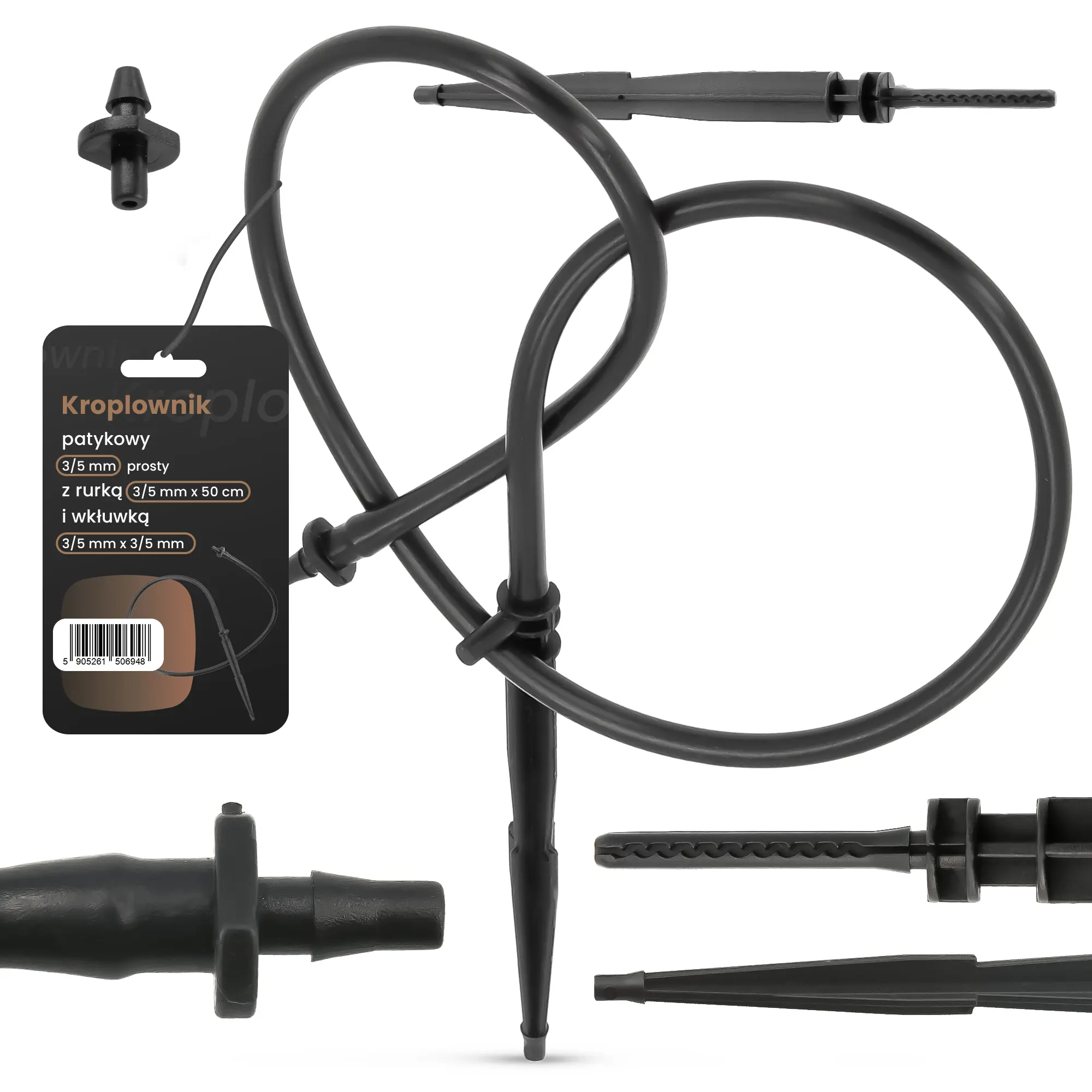 Kroplownik patykowy 3/5 mm prosty z rurką 3/5 mm x 50 cm i wkłuwką 3/5 mm x 3/5 mm