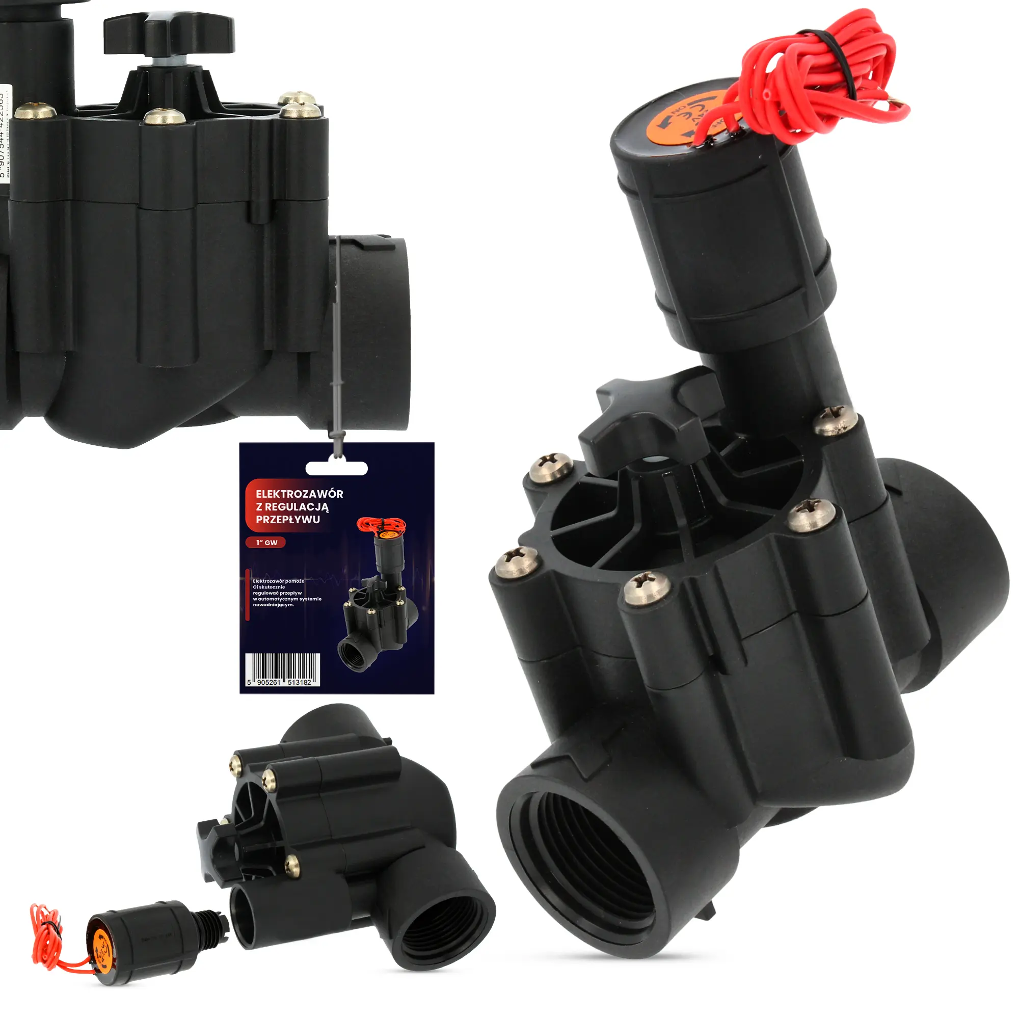 Dodatkowo elektrozawór jest wyposażony w pokrętło, które pozwala na regulację przepływu wody, co daje Ci pełną kontrolę nad procesem nawadniania.