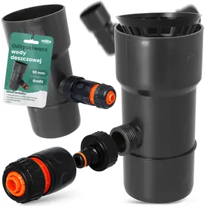 Odzyskiwacz wody deszczowej 90 mm x 1'' GZ grafit z przyłączem pod szybkozłączke 1'' GW x SZ i szybkozłączka 1/2'' W x SZ