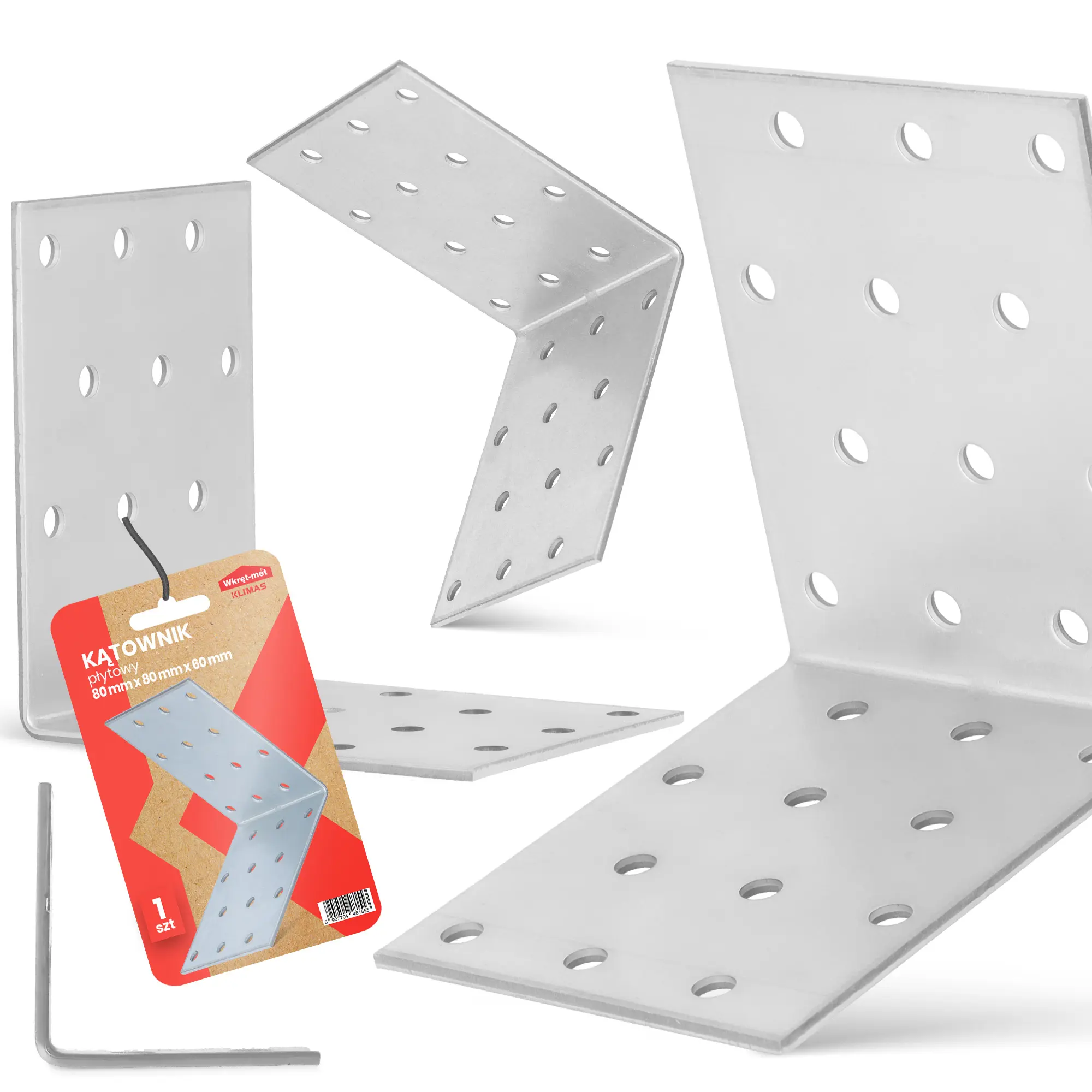 Kątownik płytowy wykonano z wysokiej jakości stali ocynkowanej. To gwarancja, że element jest trwały i solidny.