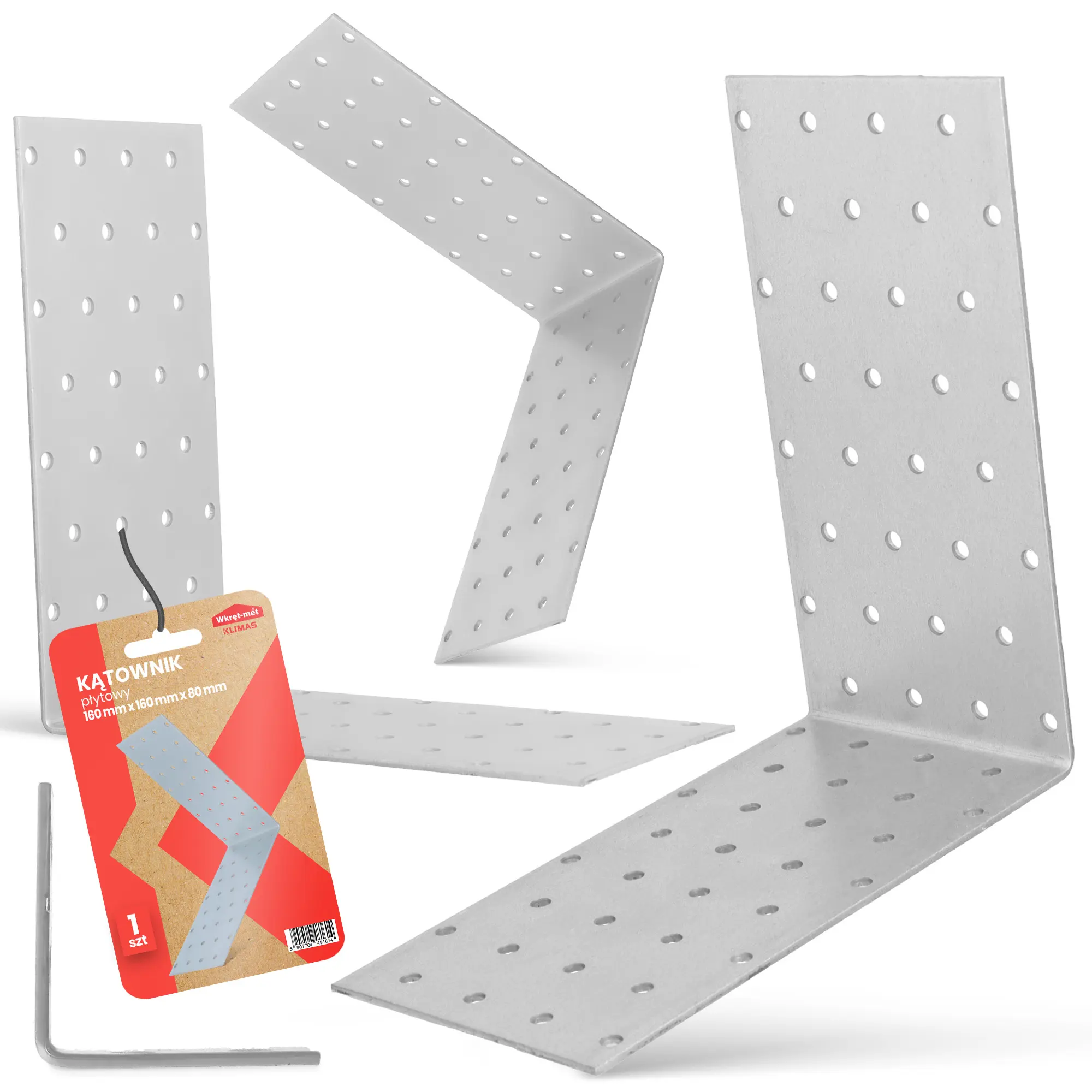 Kątownik płytowy wykonano z wysokiej jakości stali ocynkowanej. To gwarancja, że element jest trwały i solidny.