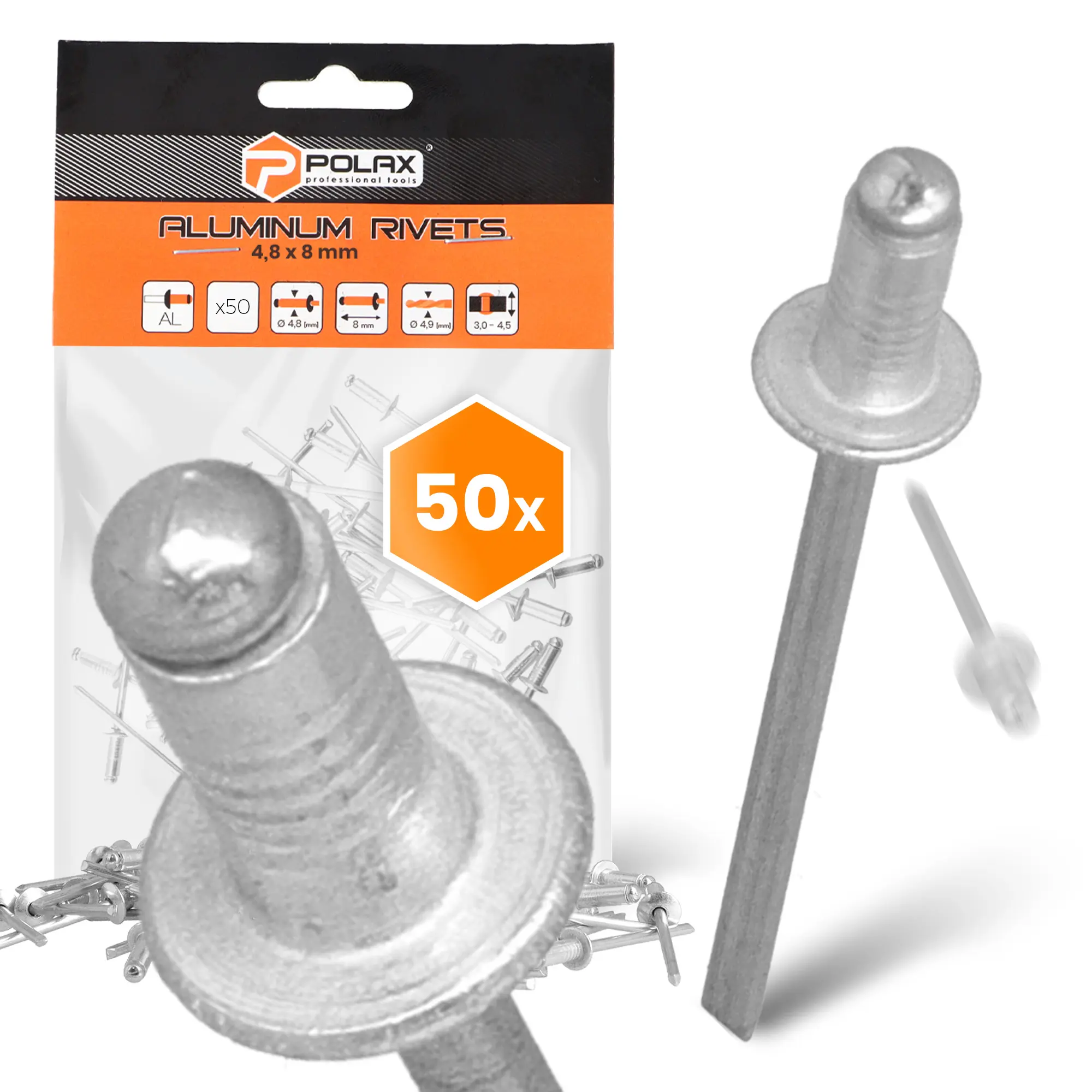 Nity aluminiowe 4,8 mm х 8 mm 50 szt.