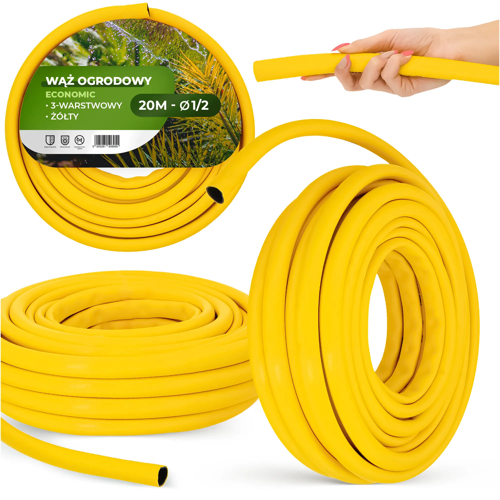 Wąż ogrodowy Economic 3-warstwowy Żółty 1/2'' 20 m