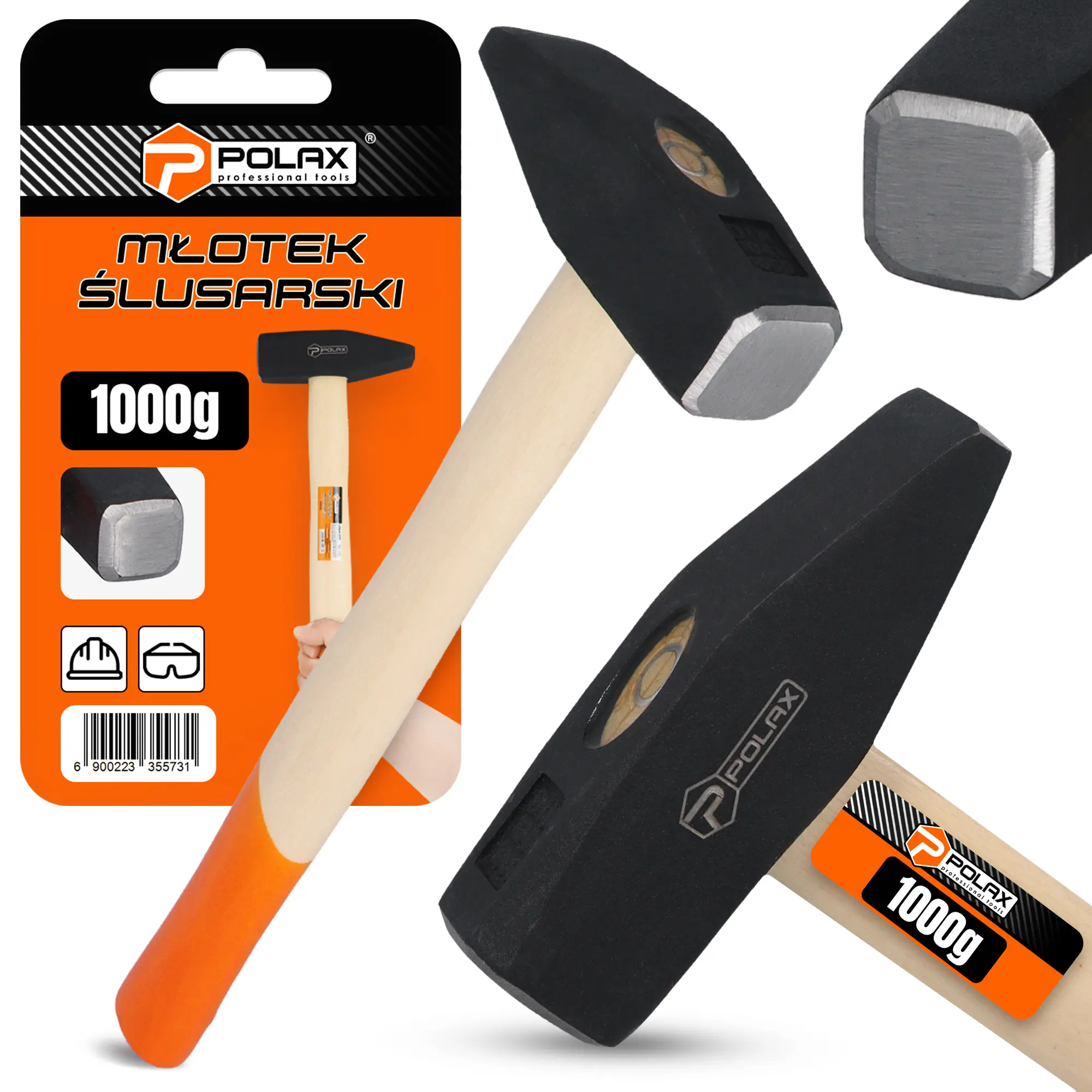 Młotek ślusarski z drewnianym trzonkiem 1000 g