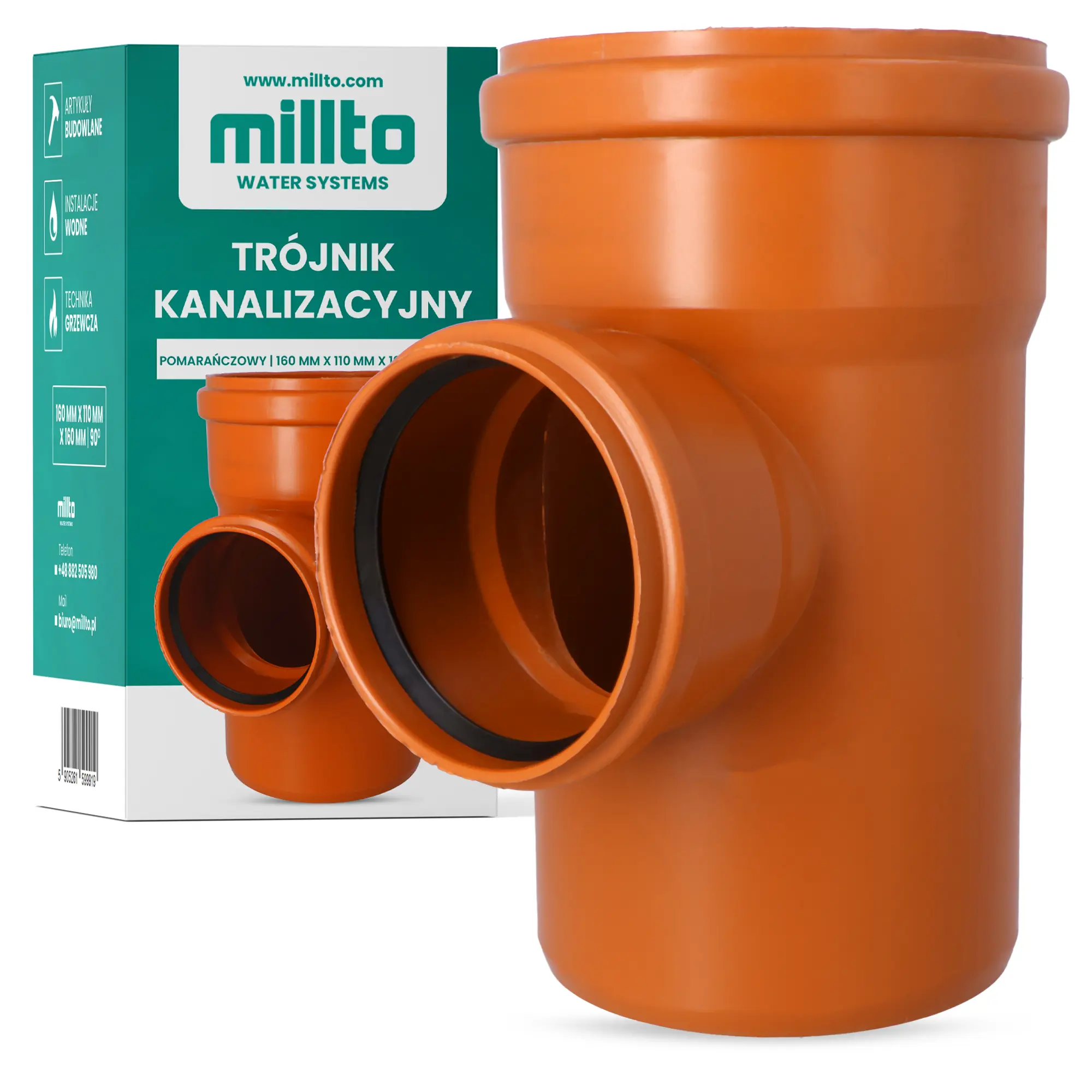 Trójnik kanalizacyjny 160 mm x 110 mm x 160 mm 90º pomarańczowy