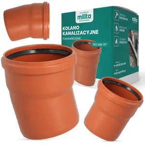 Kolano kanalizacyjne 160 mm x 160 mm 15º pomarańczowe