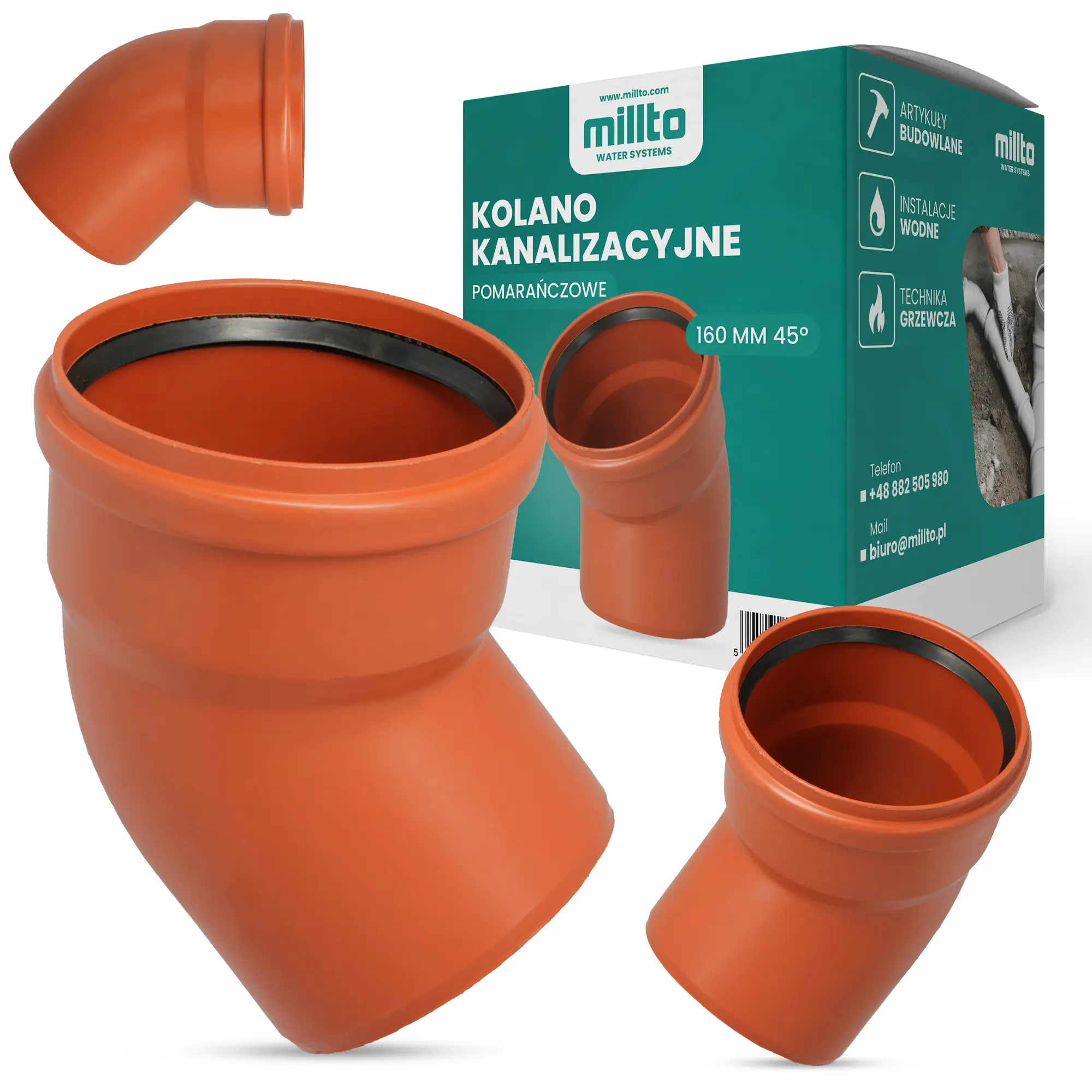 Kolano kanalizacyjne 160 mm x 160 mm 45º pomarańczowe