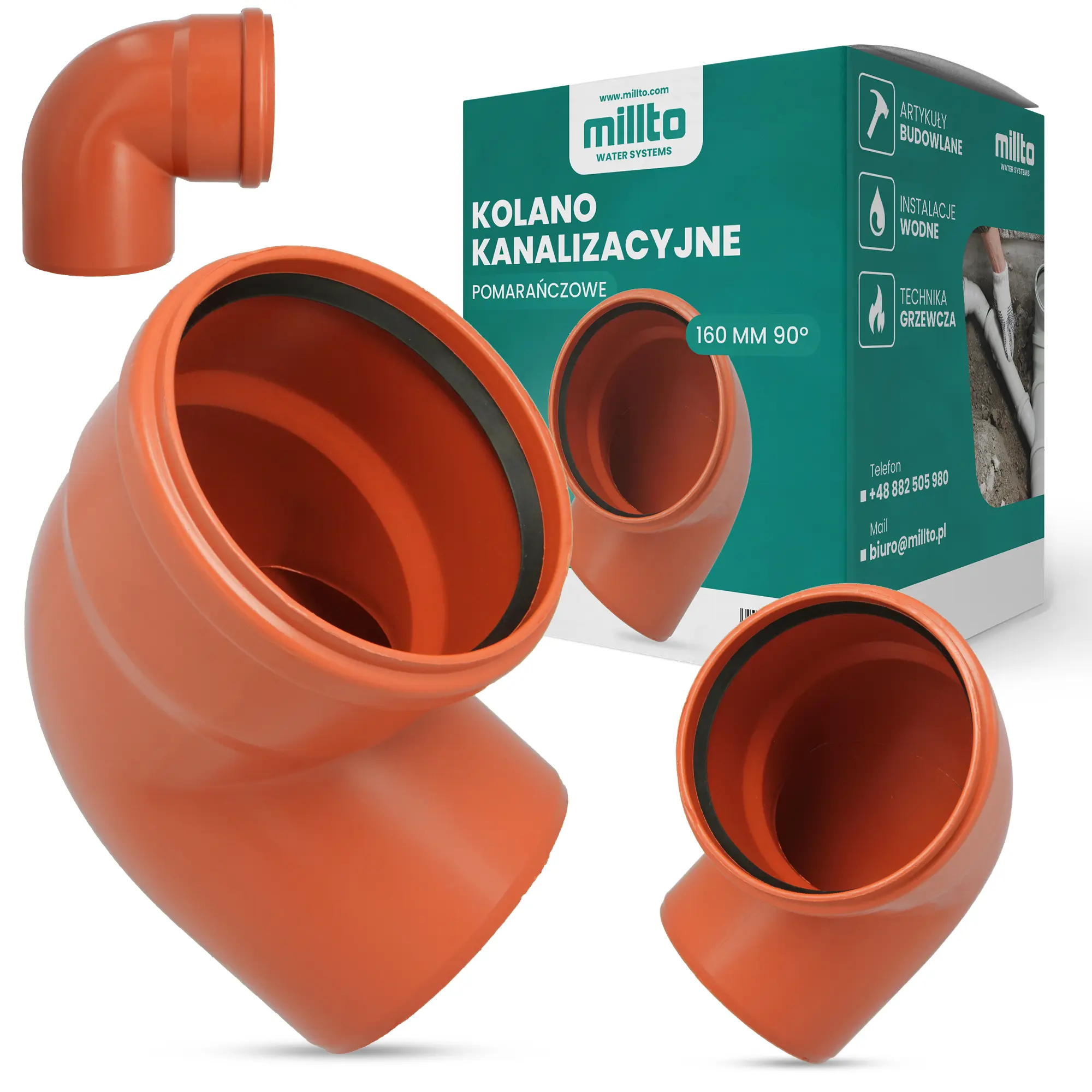 Kolano kanalizacyjne 160 mm x 160 mm 90º pomarańczowe