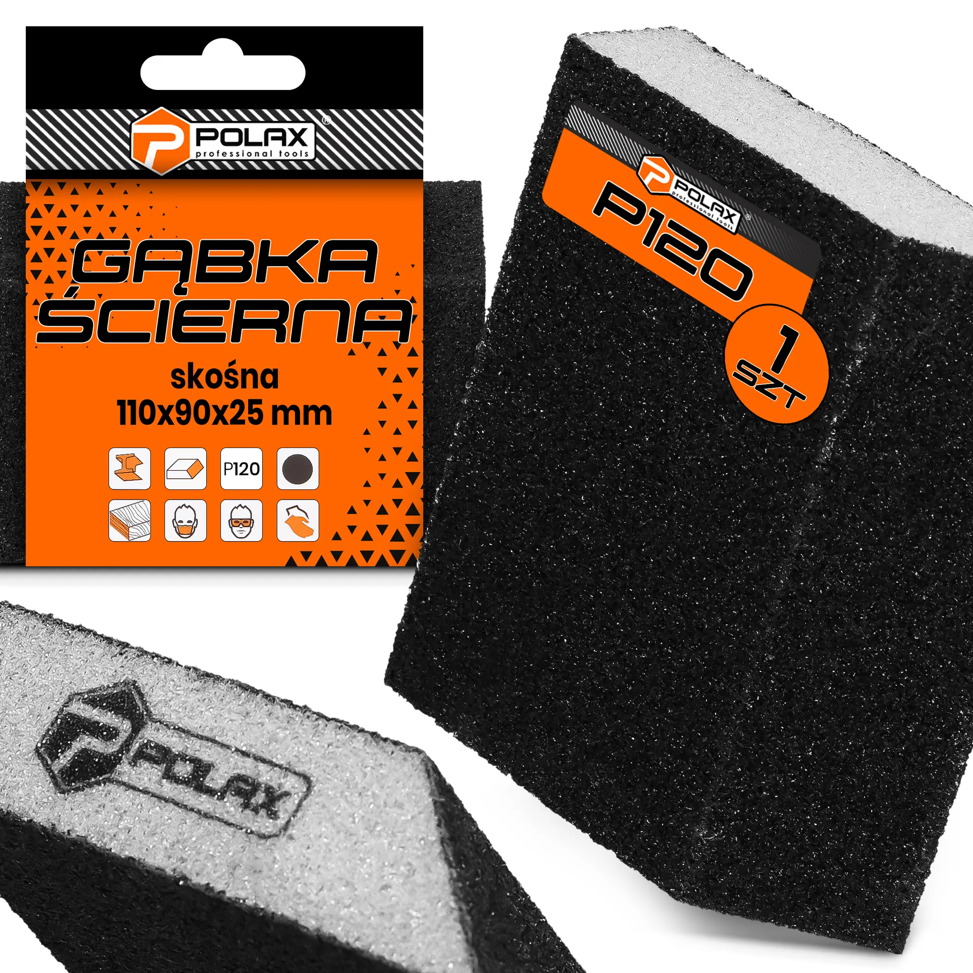 Gąbka ścierna skośna 110 mm x 90 mm x 25 mm P120