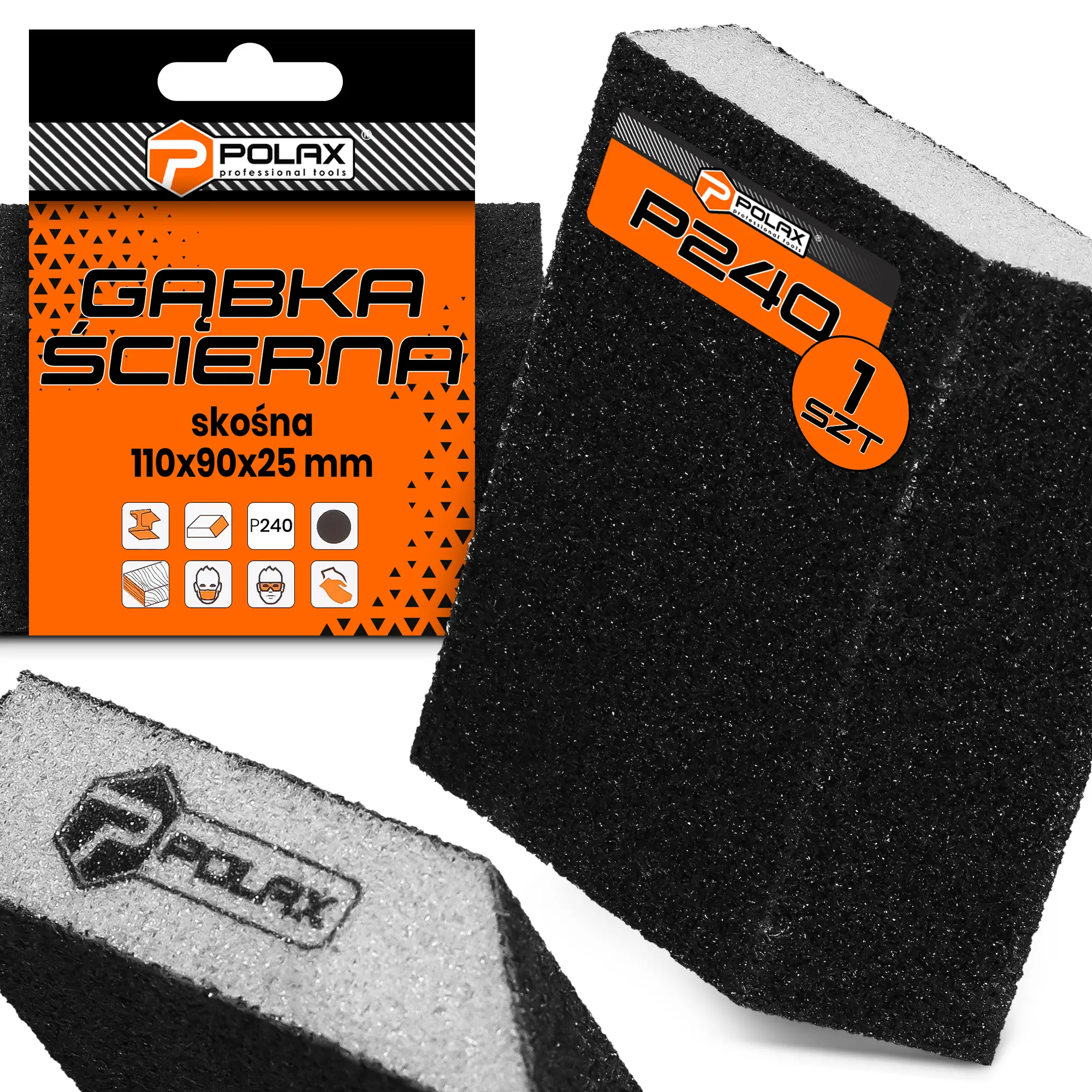 Gąbka ścierna skośna 110 mm x 90 mm x 25 mm P240