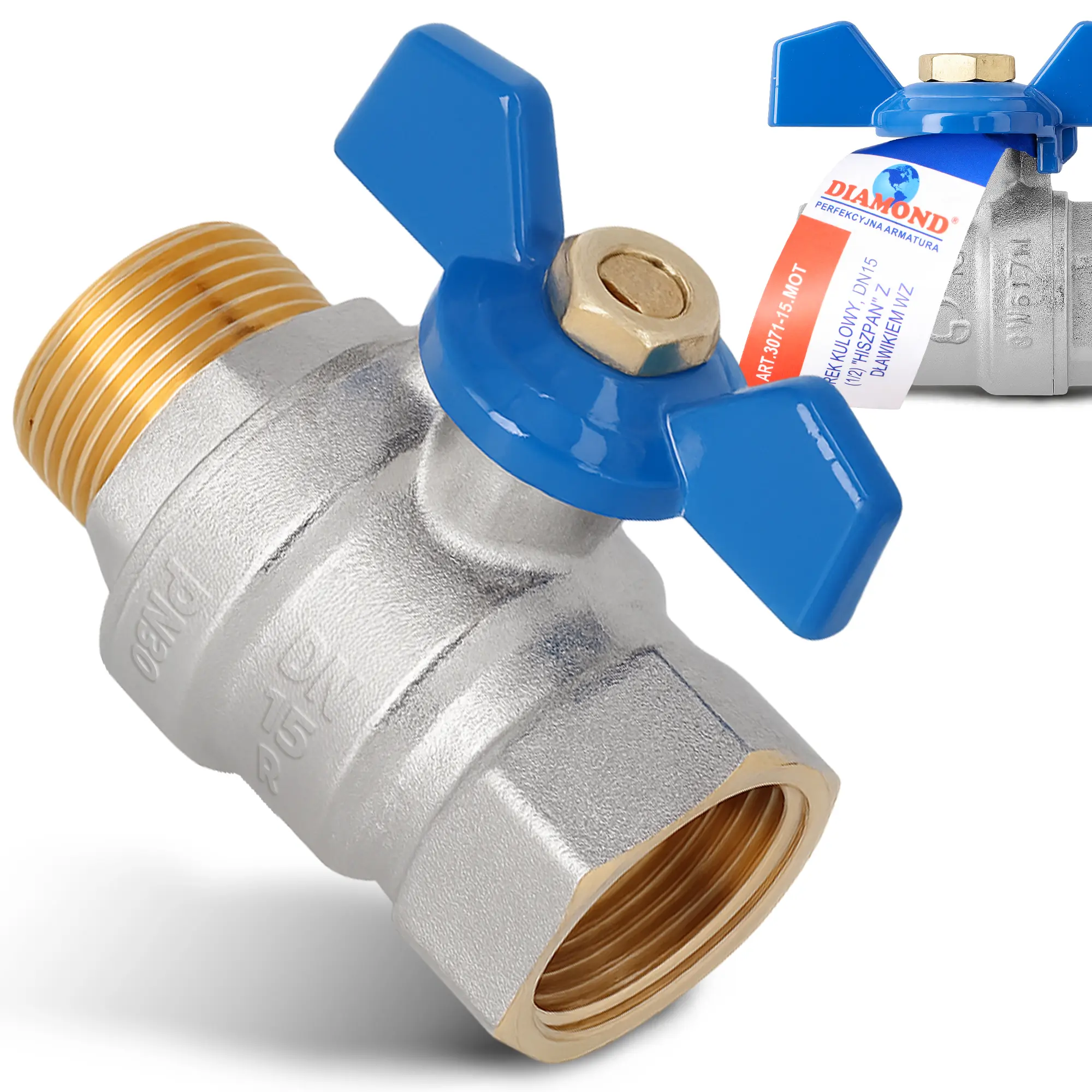 Zawór kulowy motylkowy z dławikiem 30 bar 1/2'' GW x 1/2'' GZ