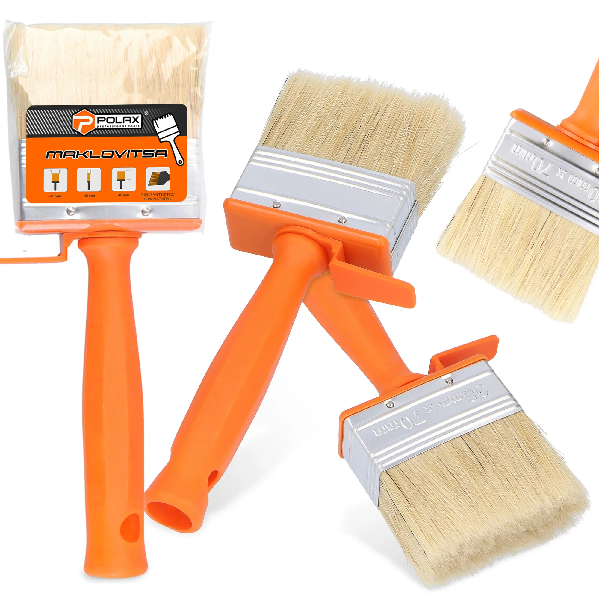 Włosie pędzla tapeciaka to połączenie materiałów naturalnych i syntetycznych najwyższej jakości. Gęsta, a jednocześnie miękka szczecina pozwala na dokładną i równomierną aplikację preparatu na ścianie - niezależnie od tego, czy jest gładka, czy chropowata.